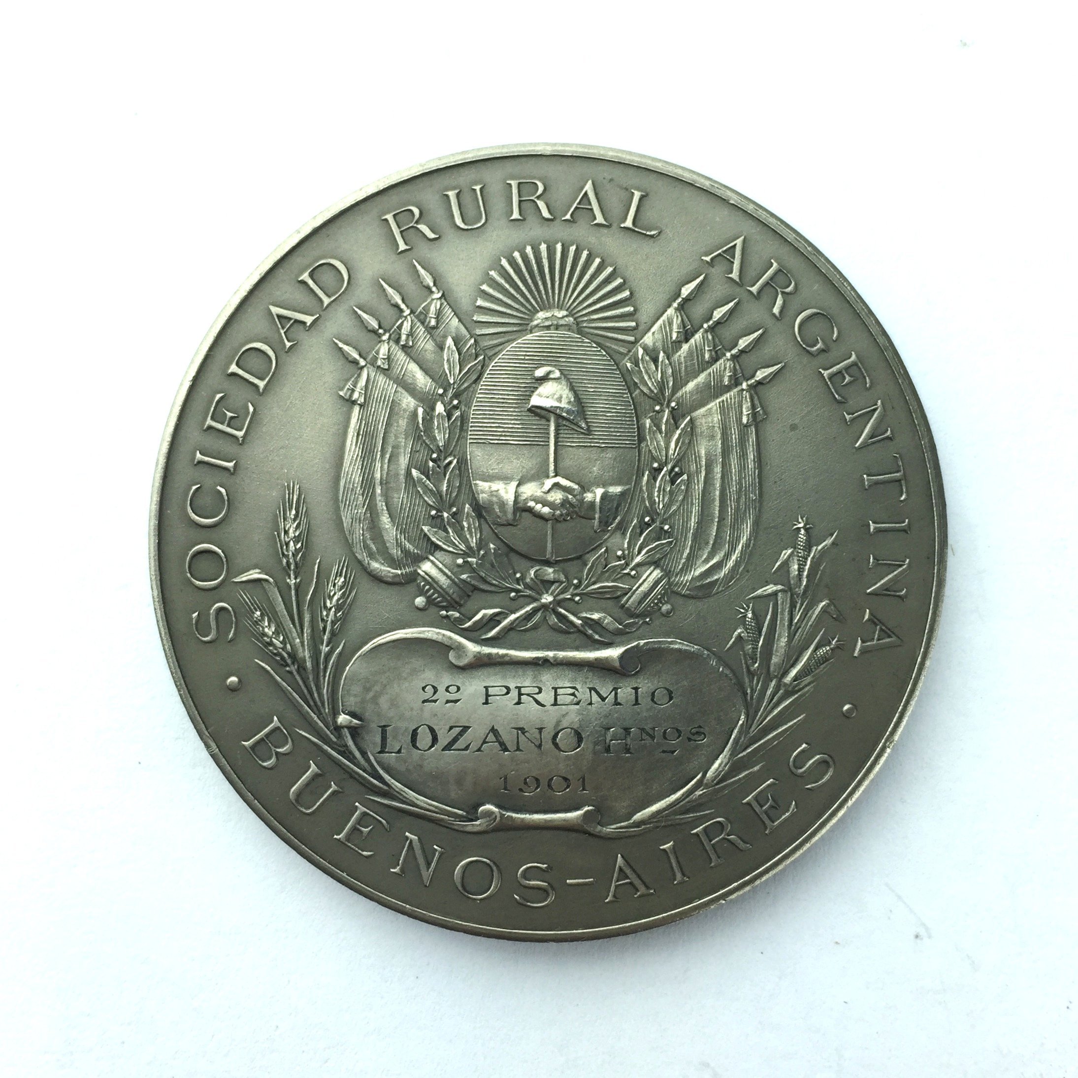 2 medallas argentinas en bronce y plata. «Sociedad Rural Argentina.» Diámetro 5 cm.