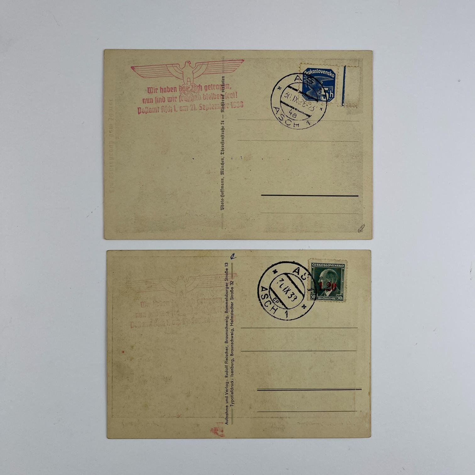 Dos postales alemanas época nacionalsocialista. «Rudolf Fleischer» y «Adolf Hitler».