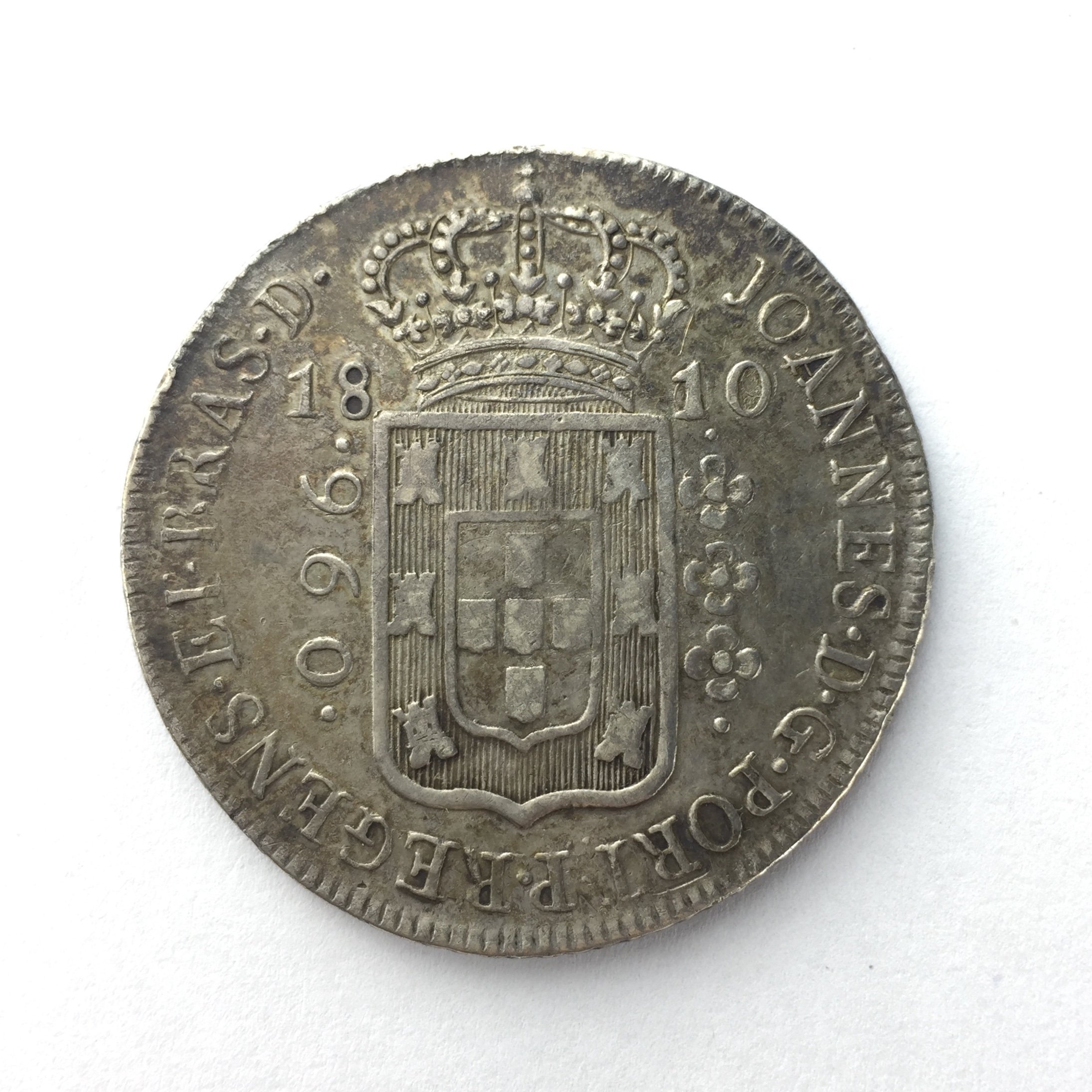 5 monedas imperiales portuguesas y brasileñas, denominación 960 reis. Años 1810, 1814, 1816, 1817, 1820.