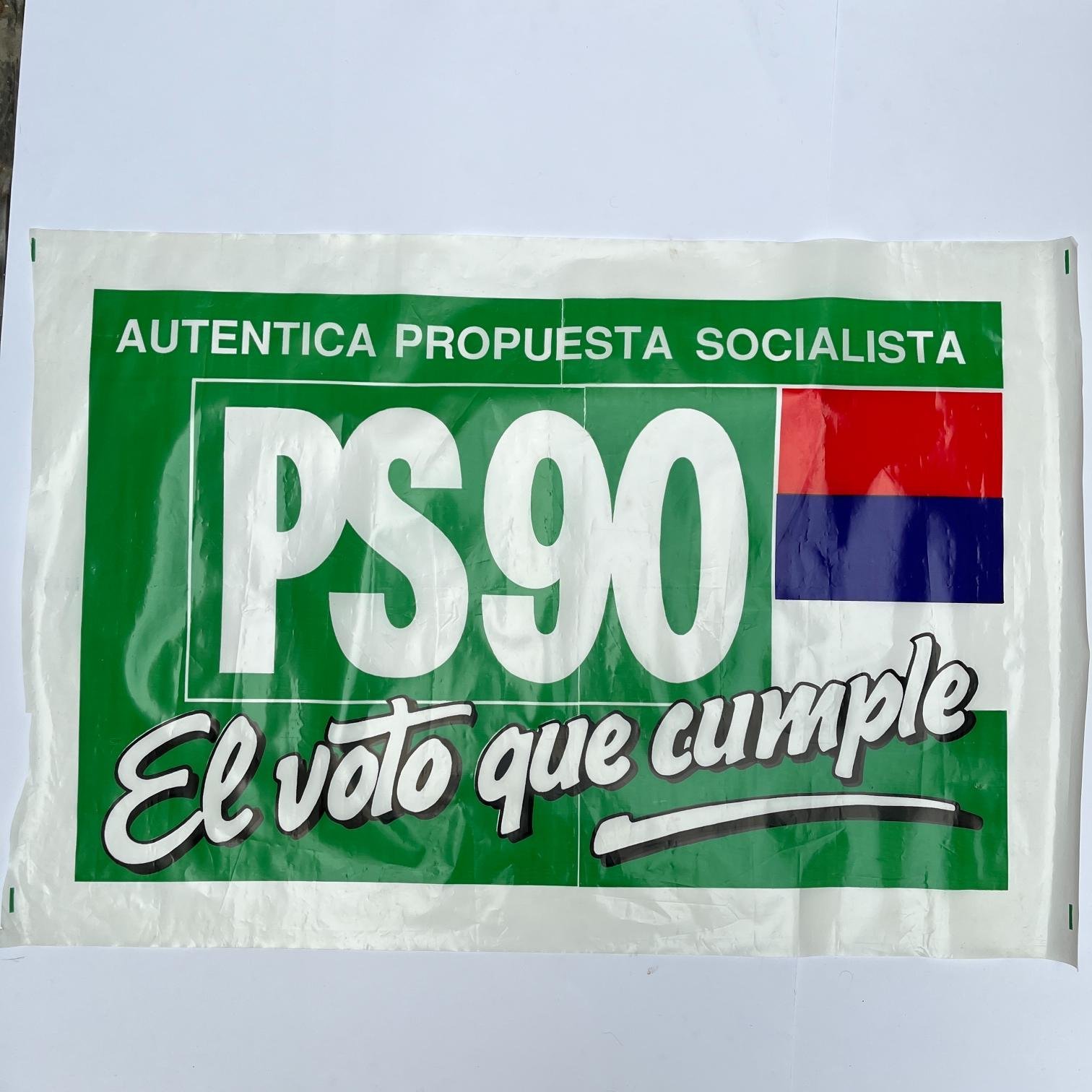 Seis afiches electorales “balconeras” para las elecciones del 1994 y 1999, pertenecientes al Frente Amplio, el Partido Demócrata Laboral, el Partido Socialista y el Partido Verde.