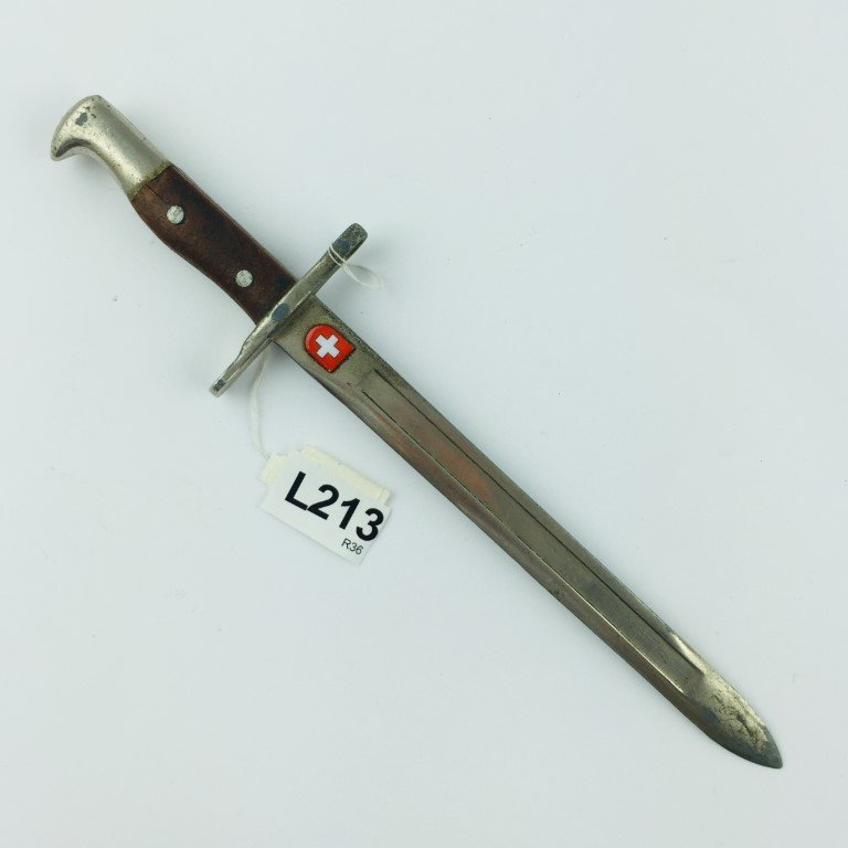 Abrecartas en forma de miniatura de bayoneta de fusil suizo. Largo 20.5 cm.