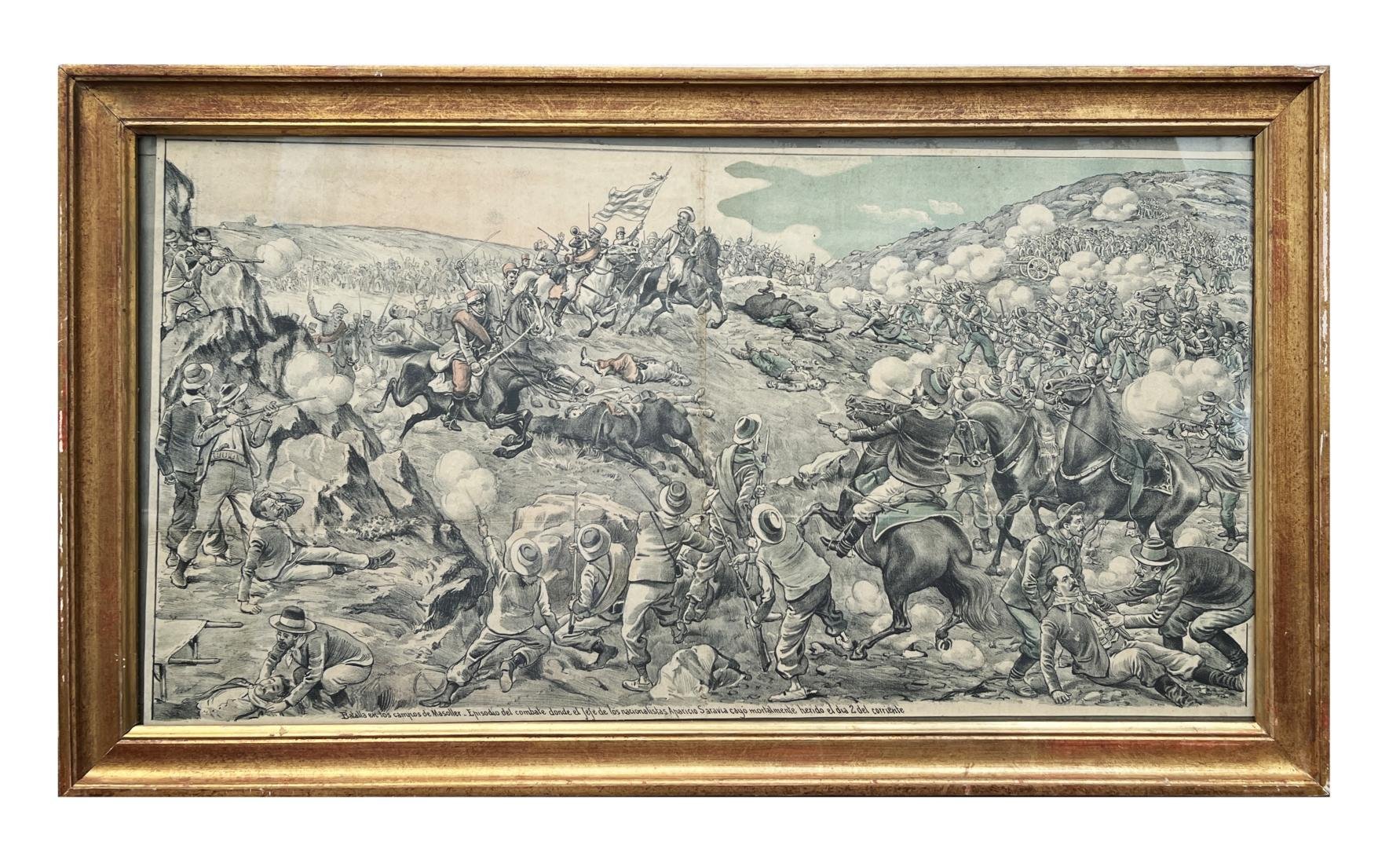 Afiche. «Batalla en los campos de Masoller. Episodio del combate donde el jefe de los nacionalistas Aparicio Saravia cayó mortalmente herido el día 2 del corriente.» Publicado en la revista «El Guerrillero» en septiembre de 1904. 33 x 64 cm.