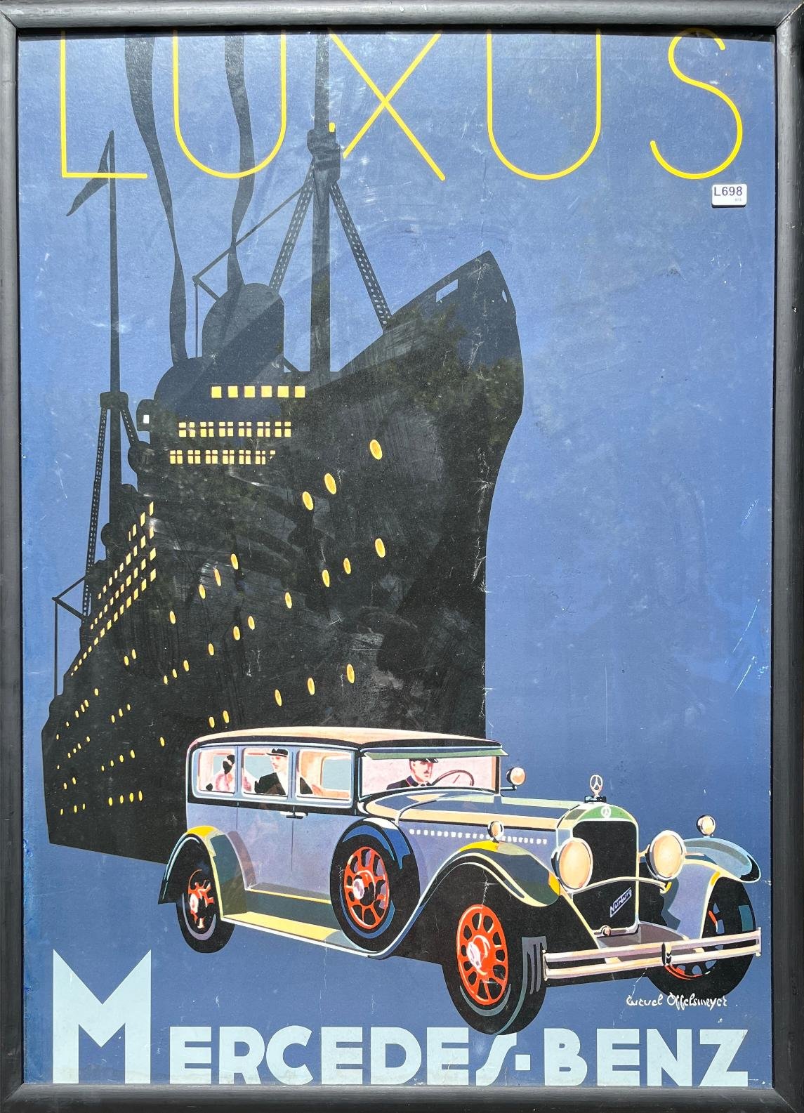Afiche color. «Luxus Mercedes-Benz», impreso según diseño de Edward Cucuel Offelsmeyer. Pegado sobre cartón. 82 x 61 cm.