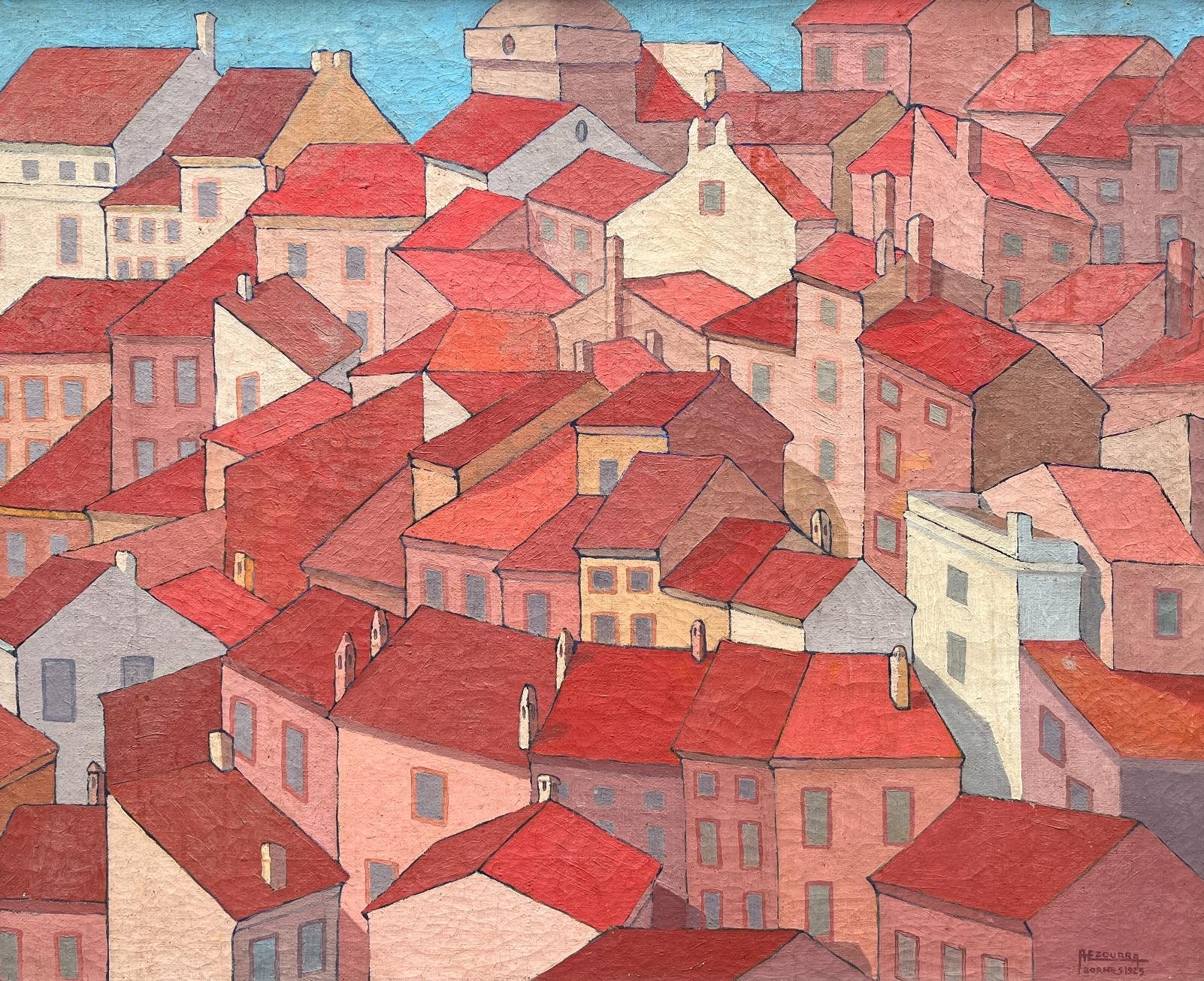 AGUSTÍN EZCURRA (Escuela uruguaya, 1880-1958) Óleo sobre tela «La ciudad de Bornes en pleno sol» Firmado y fechado «1925» abajo a la derecha 145,5 x 125,5 cm