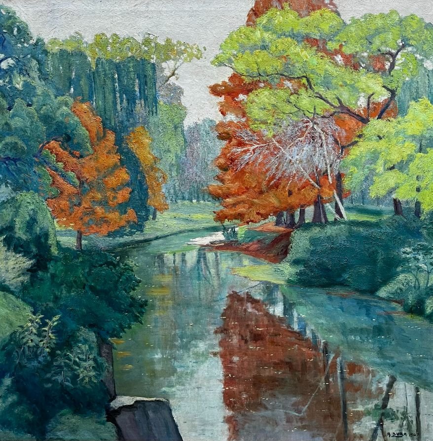 ALBERTO DURA (1888-1971) «Otoño en el Arroyo Miguelete» Óleo sobre tela Firmado y fechado «1942» abajo a la derecha 73 x 73 cm