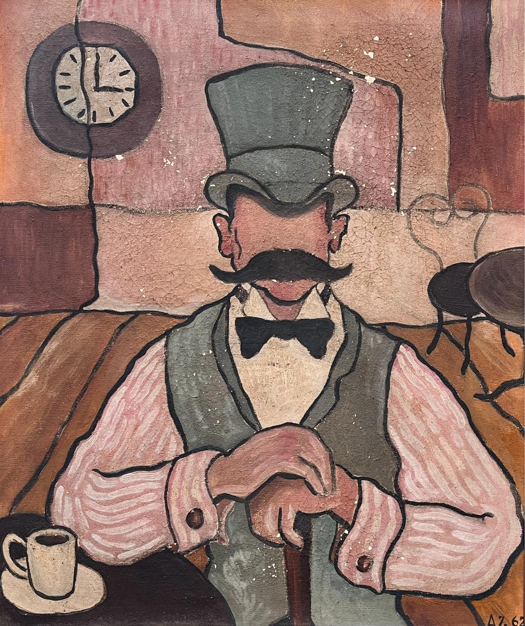 Firmado con iniciales “AZ” y fechado “62” abajo a la derecha