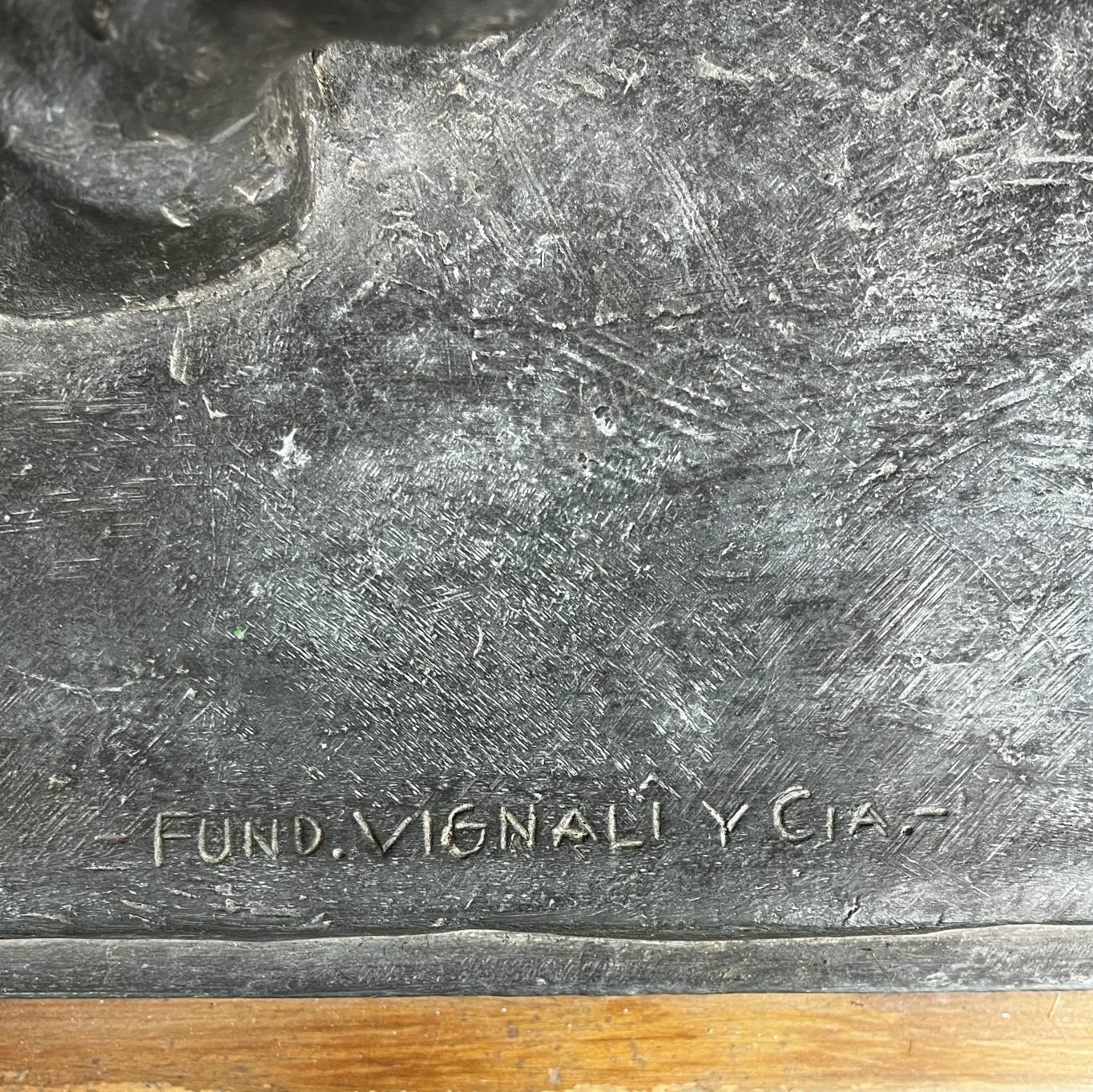 ANGELO ZANELLI (Italia, 1879-1942). Escultura en bronce pátina oscura. «Boceto para el monumento ecuestre a José Gervasio Artigas de la Plaza Independencia de Montevideo.» Firmado en la base. Sello de Fundación Vignali. 90 x 90 x 50 cm. Presentada sobre peana de madera. Alto total 95 cm.
