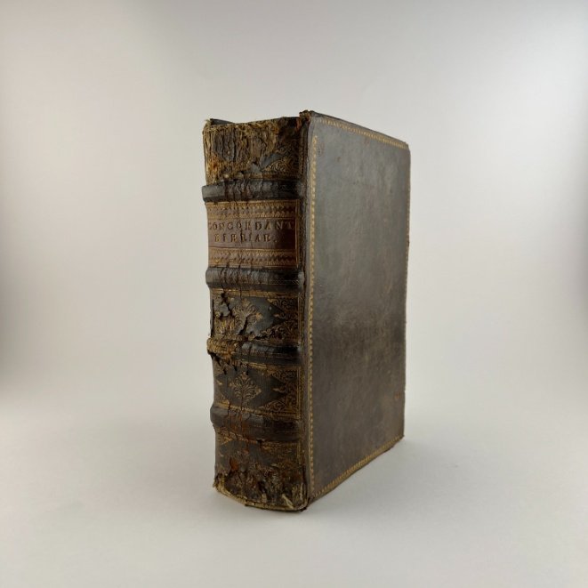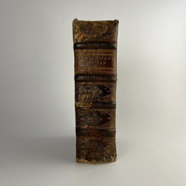 Las concordancias se refieren a aquellos libros en los que se reúnen, citados por orden alfabético los diferentes pasajes de la Biblia en los que se aborda un asunto determinado, facilitando el estudio de la Sagrada Escritura a los predicadores, teólogos y demás almas sensibles y cultas. El presente ejemplar posee el encanto de tratarse de una obra publicada a mediados del siglo XVI por un destacado impresor, Giovanni Griffin, “El viejo”, de larga actuación en la actual ciudad de Lyon, Francia, por entonces Lugduni, y en Venecia.