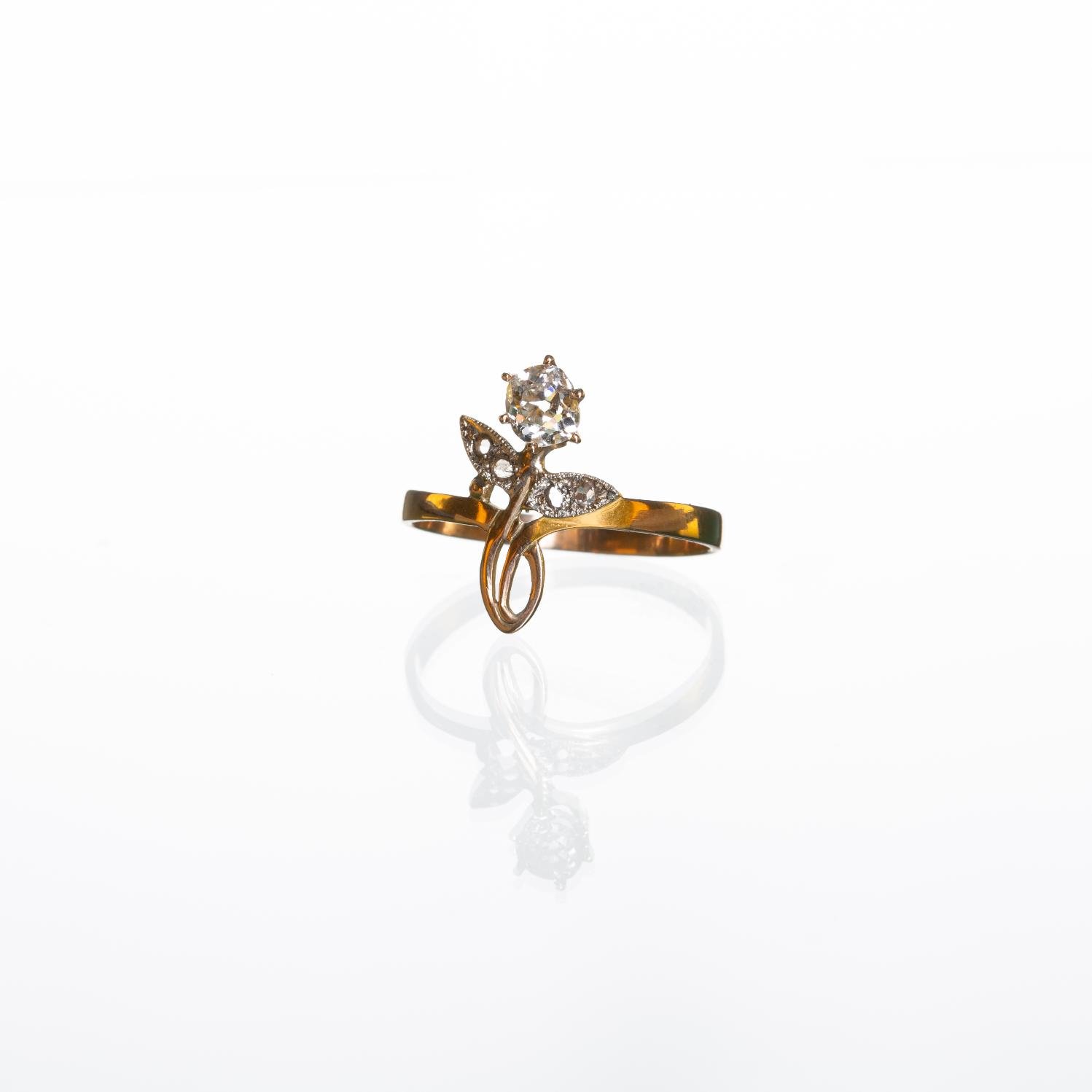 Anillo art nouveau oro amarillo, brillante y diamantes