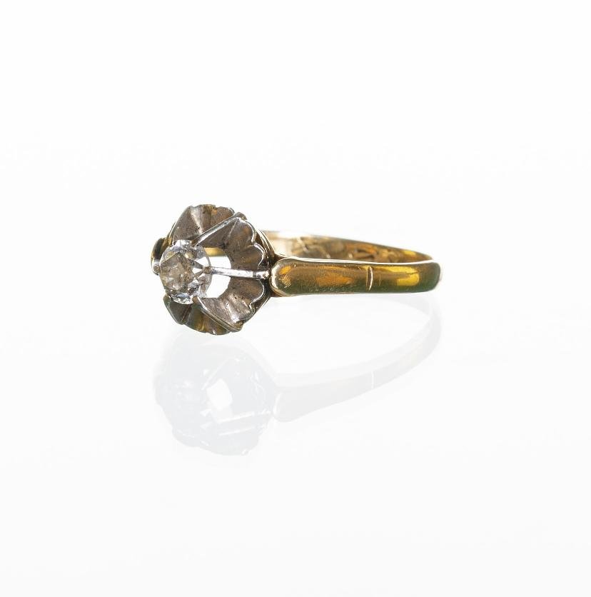 Anillo solitario en oro 18 K amarillo y blanco con brillante central de 0,25 ct aprox. Diámetro interno 16,5 mm. Peso bruto 2 gr.