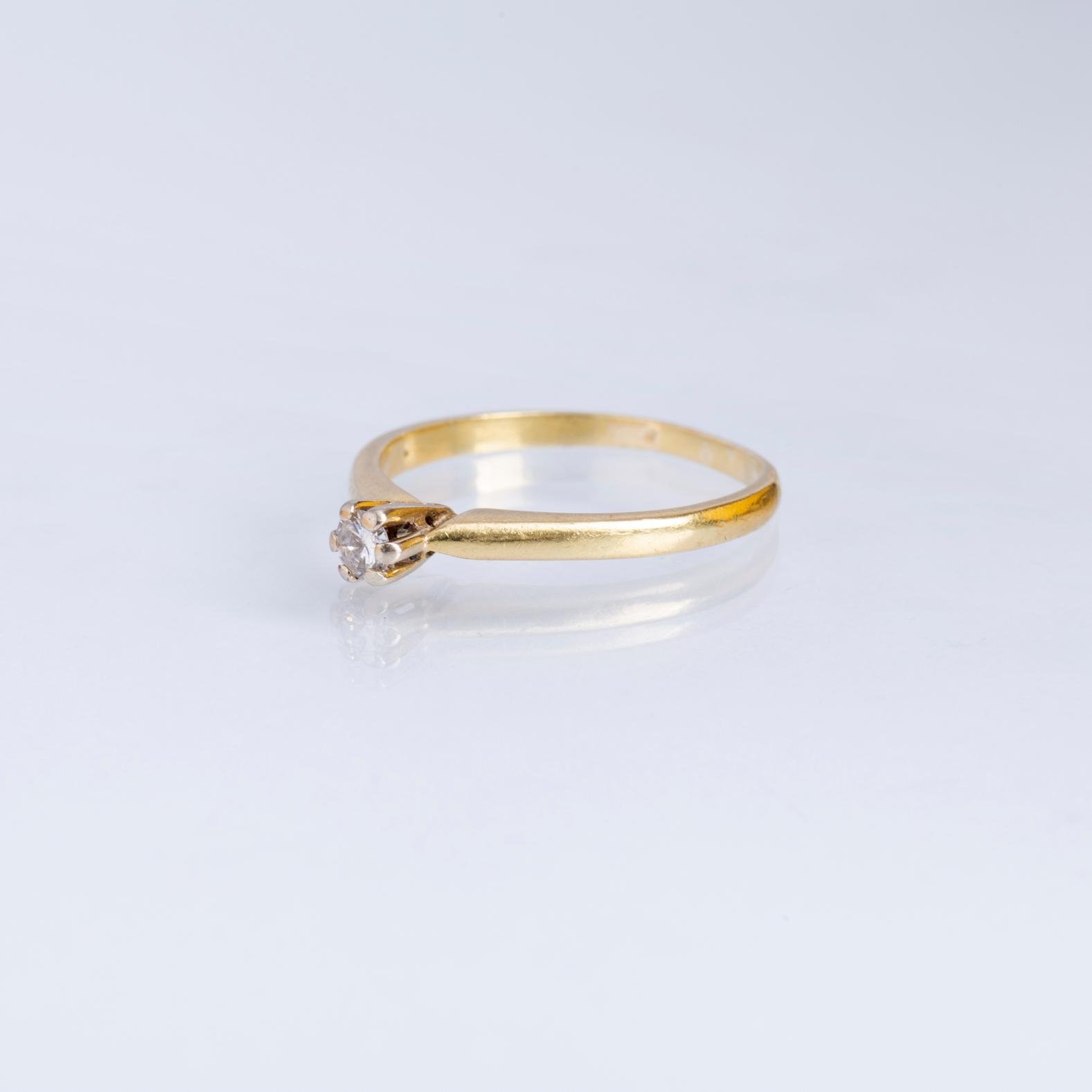 Anillo solitario en oro 18 K amarillo con diamante talla brillante de 0,10 ct aprox. Diámetro interno 18 mm. Peso bruto 2,7 gr.