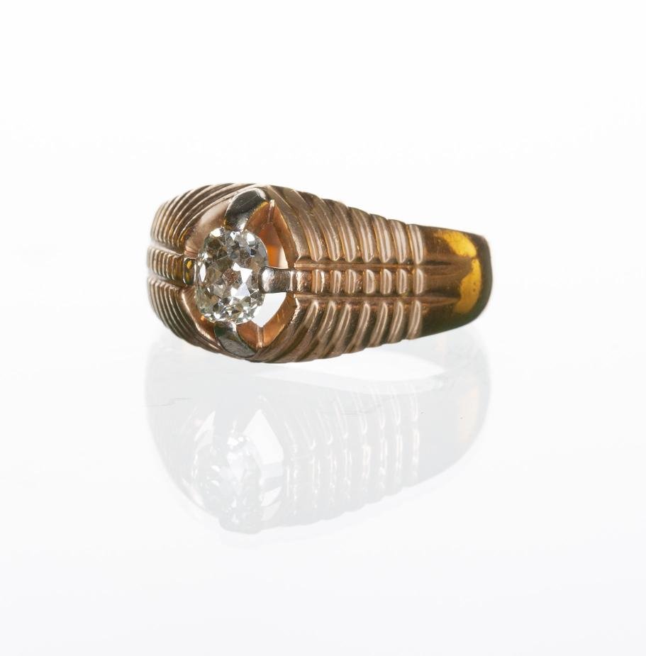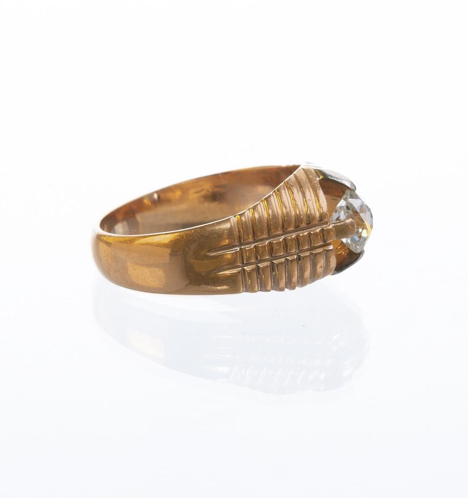 Anillo solitario en oro 18 K amarillo con un diamante talla oval de 5,8 x 5,2 x 3,5 mm. Diámetro interno 19 mm. Peso bruto 6,4 gr.