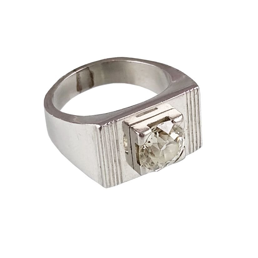 Anillo solitario en oro 18 K blanco con brillante central de 1.75 ct aprox. Diámetro interno 17 mm. Peso bruto 11.8 gr.