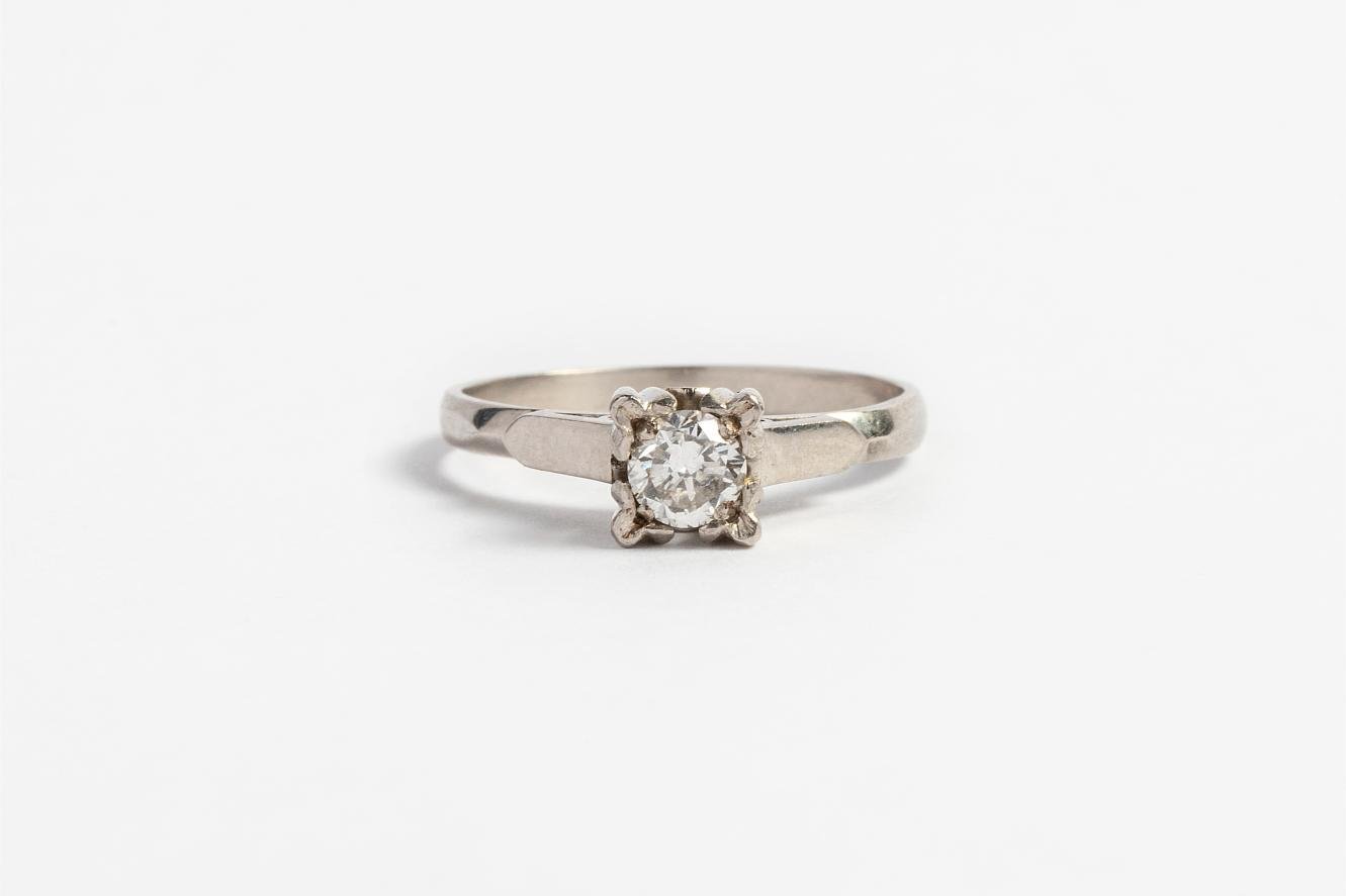 Anillo solitario en platino con brillante de 0.35 ct aprox. Diámetro interno 17.5 mm. Peso bruto 4 gr.