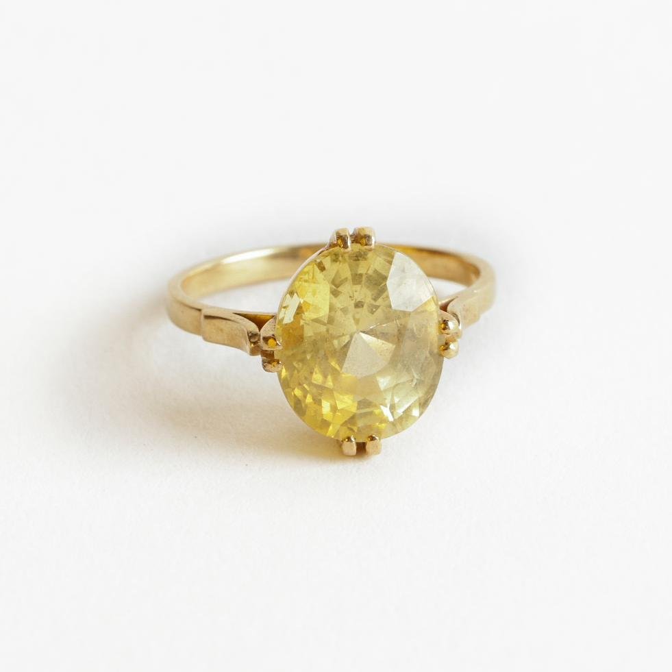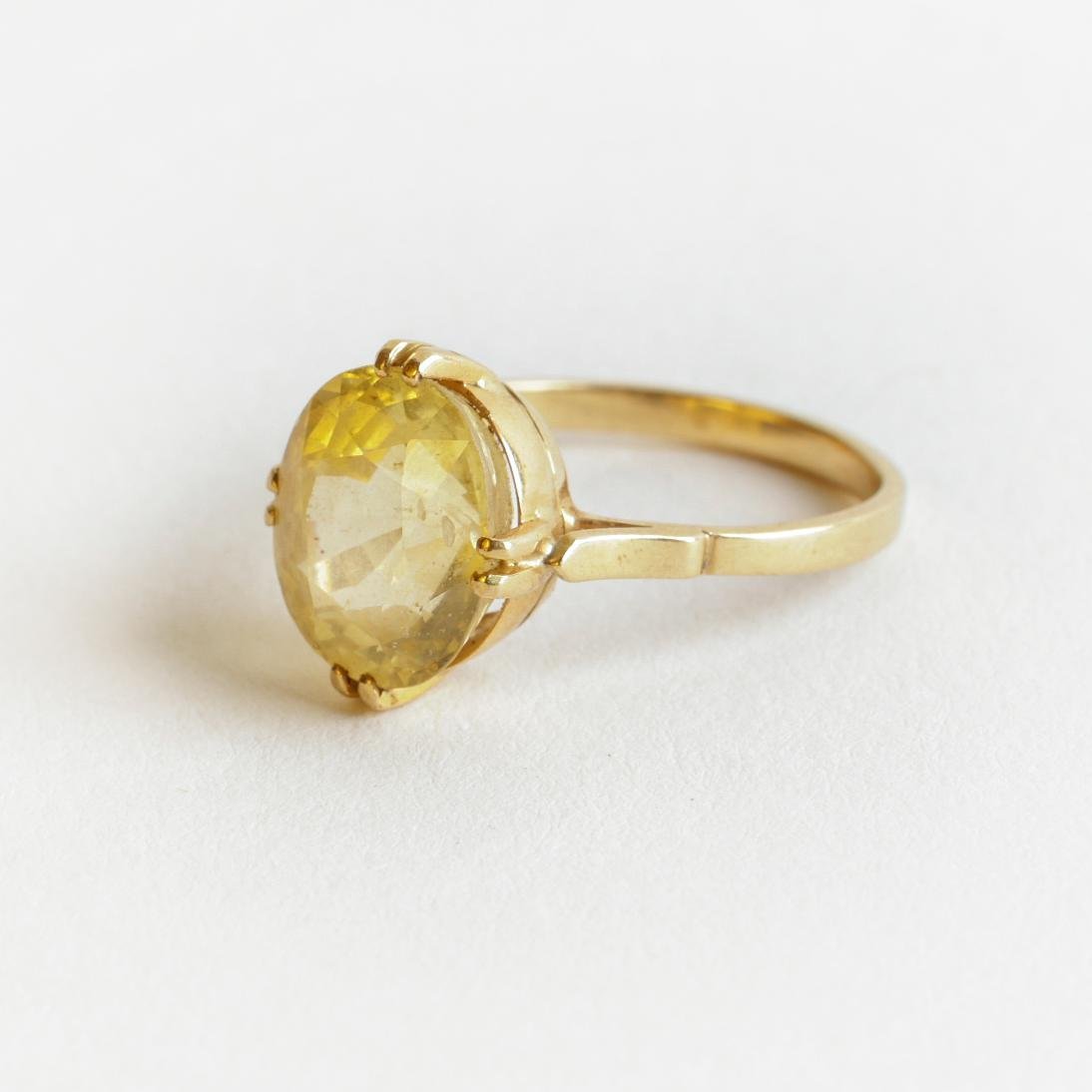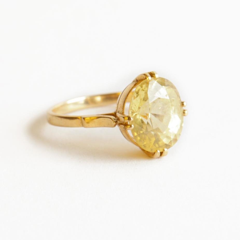 Anillo solitario en oro 18 K amarillo con topacio central talla oval. Diámetro interno 17 mm. Peso bruto 4 gr.