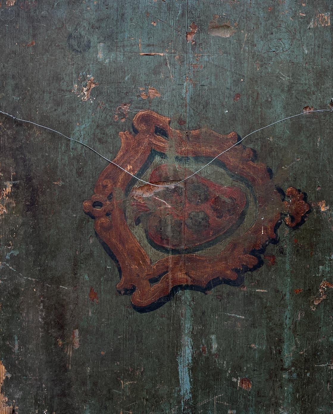 Anónimo italiano s. XIX Óleo sobre tabla de pinotea «Retrato de Gaetano Griesler Veronese» Al dorso blasón nobiliario, pintado al óleo 57,5 x 46 cm Tabla restaurada