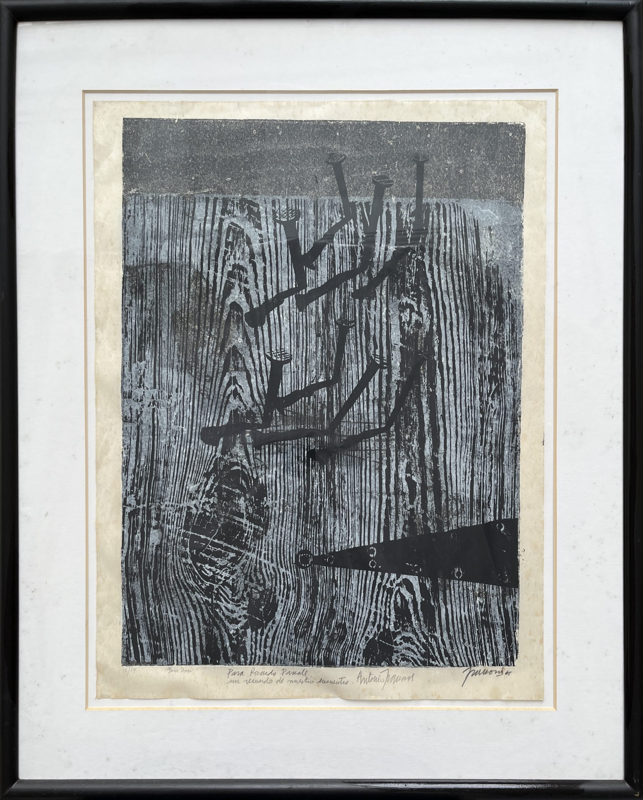 Firmado y fechado «65» abajo a la derecha, dedicado «Para Ricardo Pascale un recuerdo de nuestro encuentro» abajo al centro, titulado abajo al centro y seriado «13/14» abajo a la izquierda a lápiz fuera de la obra