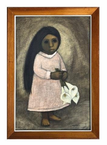 ANTONIO GONZÁLEZ OROZCO (Escuela mexicana, 1933-2020) Óleo sobre fibra «Niña» Firmado abajo a la derecha 60 x 40 cm