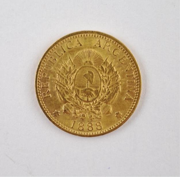 Moneda argentina en oro 900 denominación 5 pesos del año 1888. Peso 8,01 gr.