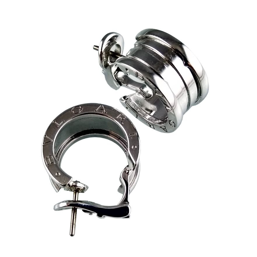 Par de aros Bulgari en oro 18 K blanco. Peso total 15 gr. Con funda original.