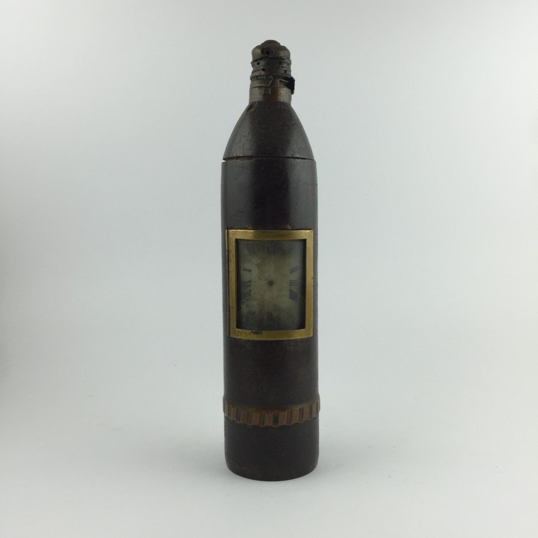 Bala de cañón Canet transformada a reloj. Tipo de proyectiles utilizados por el ejército uruguayo durante las revoluciones de 1897 y 1904.