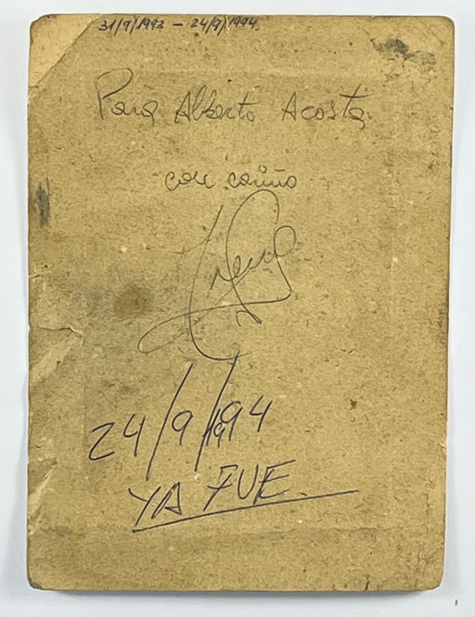 Bandera del Club Atlético Peñarol, en tela, con firma en drypen de Fernando Morena fechada 13 de octubre de 1983. 138 x 62 cm. Junto con foto de Morena en el Estadio Centenario, firmada y dedicada «A Alberto Acosta». 15 x 10 cm.