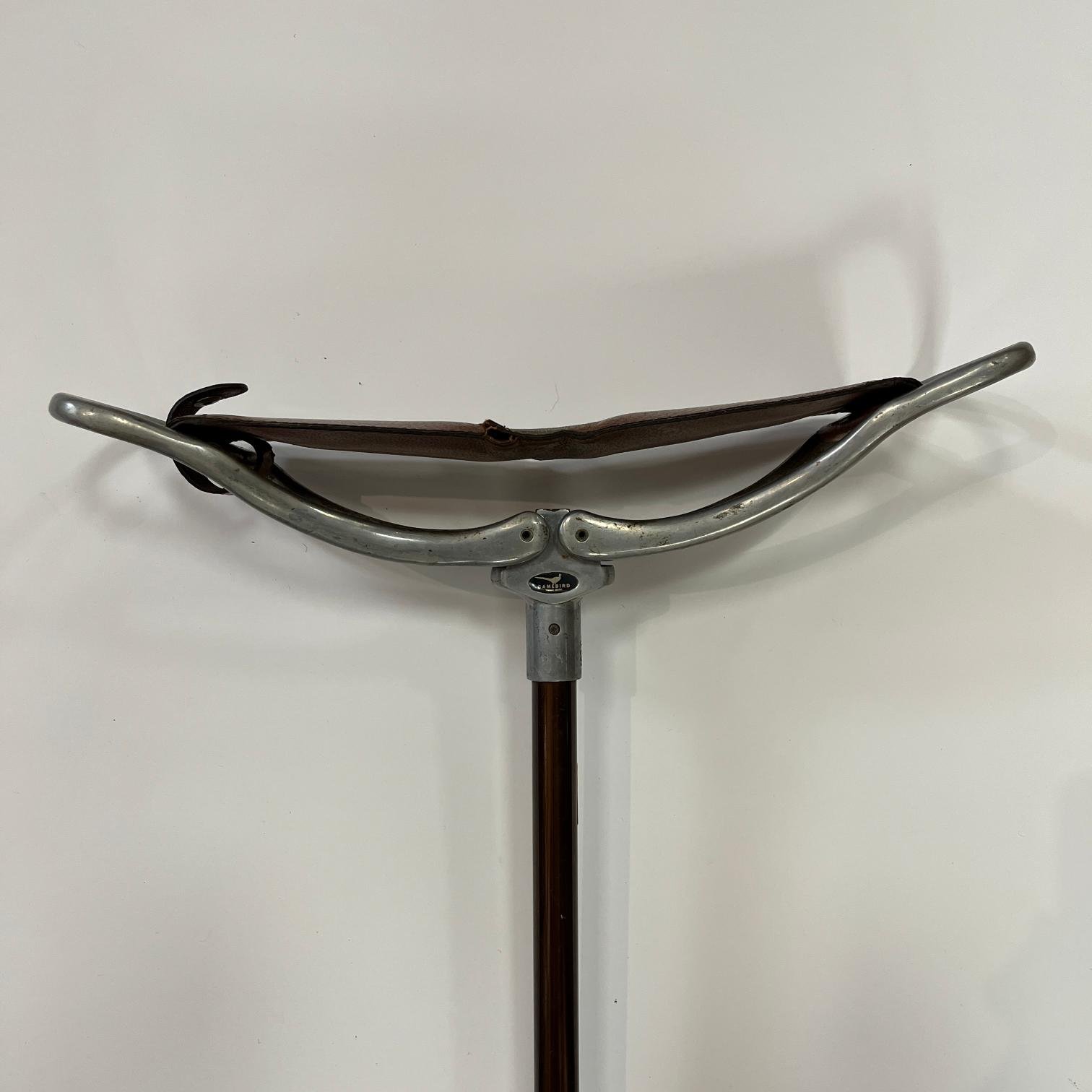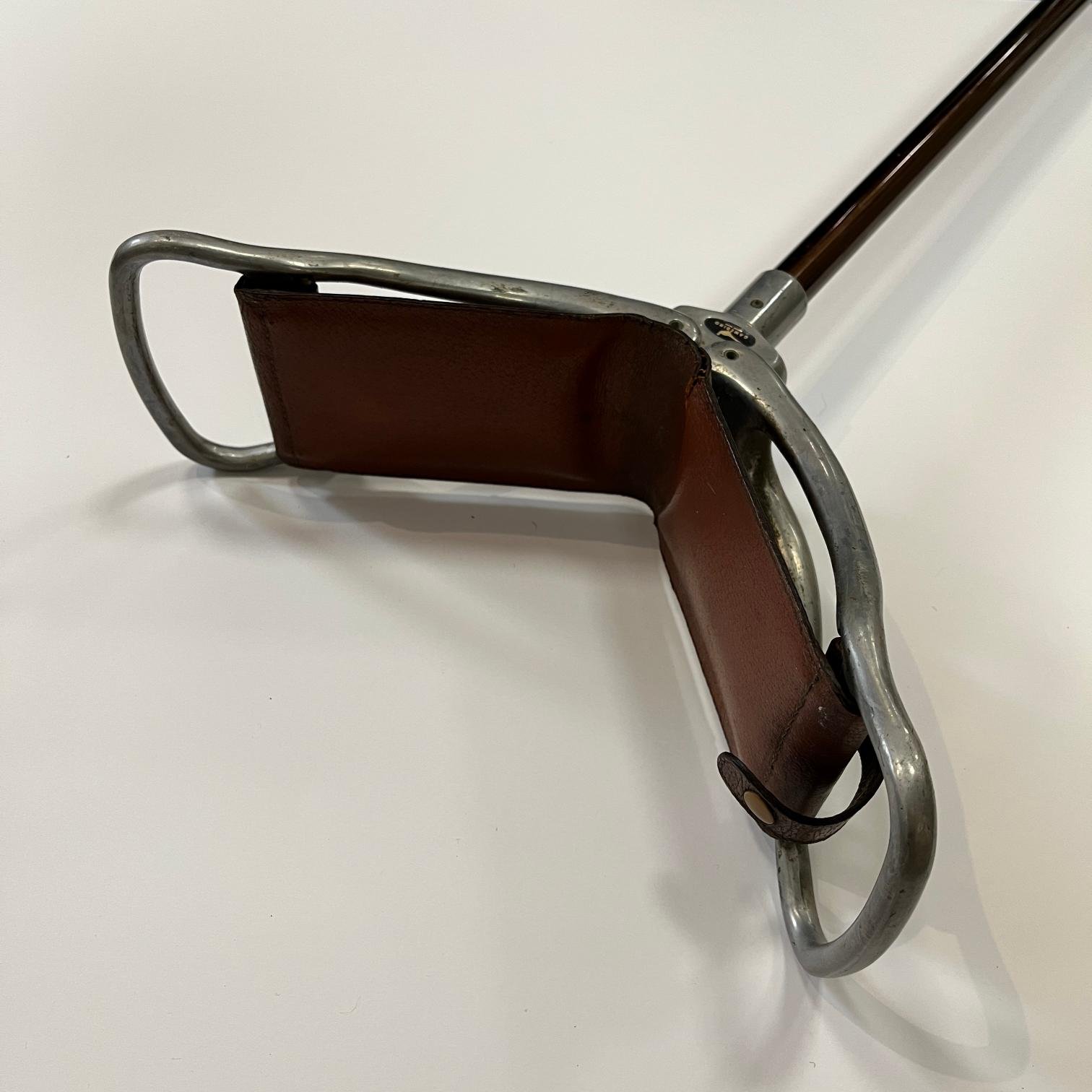 Bastón británico marca Gamebird, en aluminio, con asiento plegable en cuero.