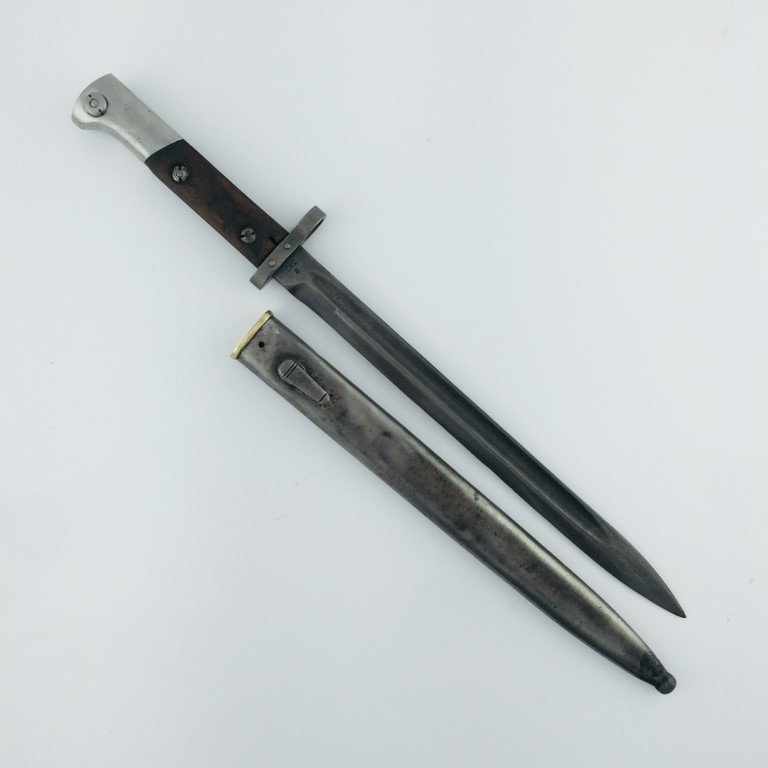 Bayoneta para fusil Mauser checo. Cachas en madera lisa. Vaina original.