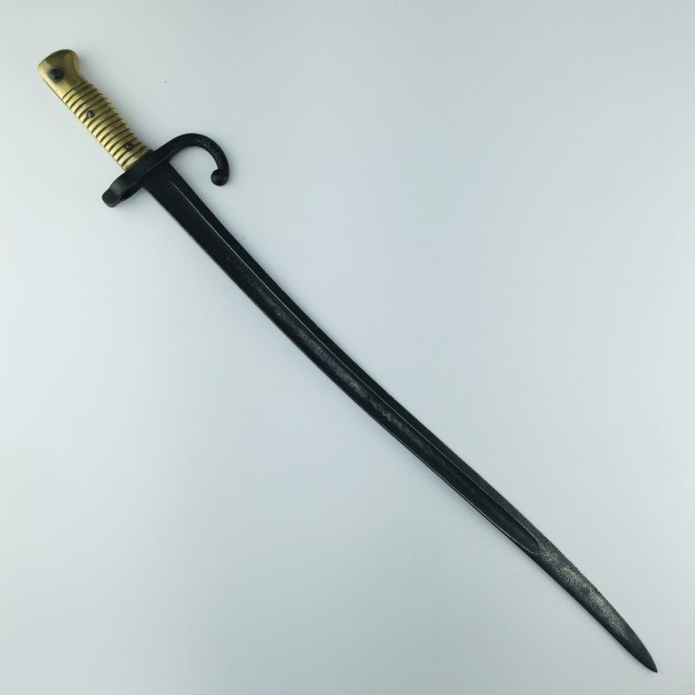 Bayoneta tipo yatagán para fusil Chassepot. Empuñadura en bronce. Sin vaina.
