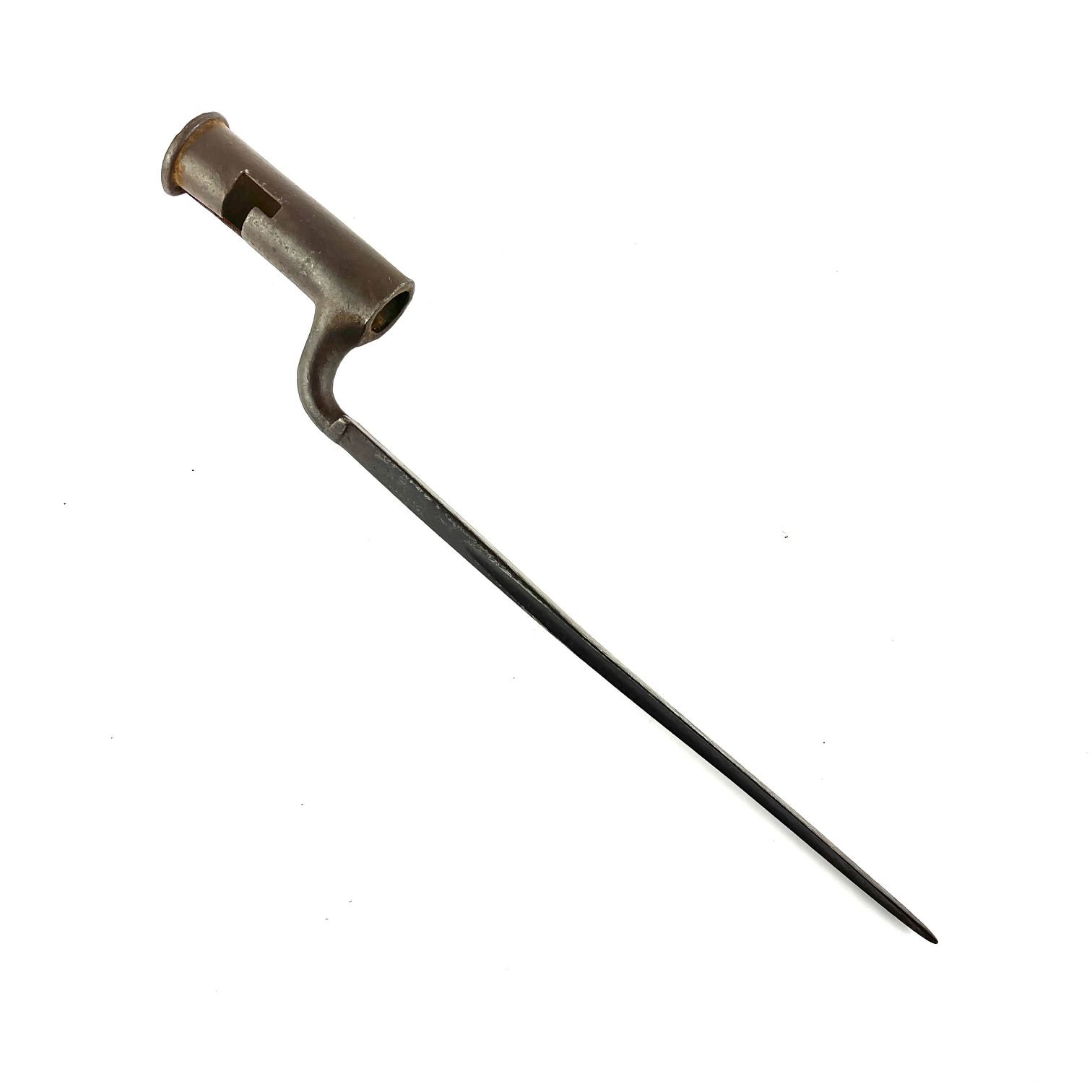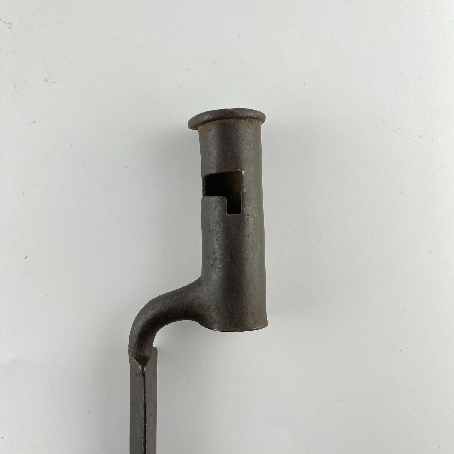 Bayoneta de cubo inglesa para fusil Brown Bess. Hoja de tres caras con doble desangrador. Largo de cubo 10 cm. Largo de hoja 30 cm. Largo total 41 cm.