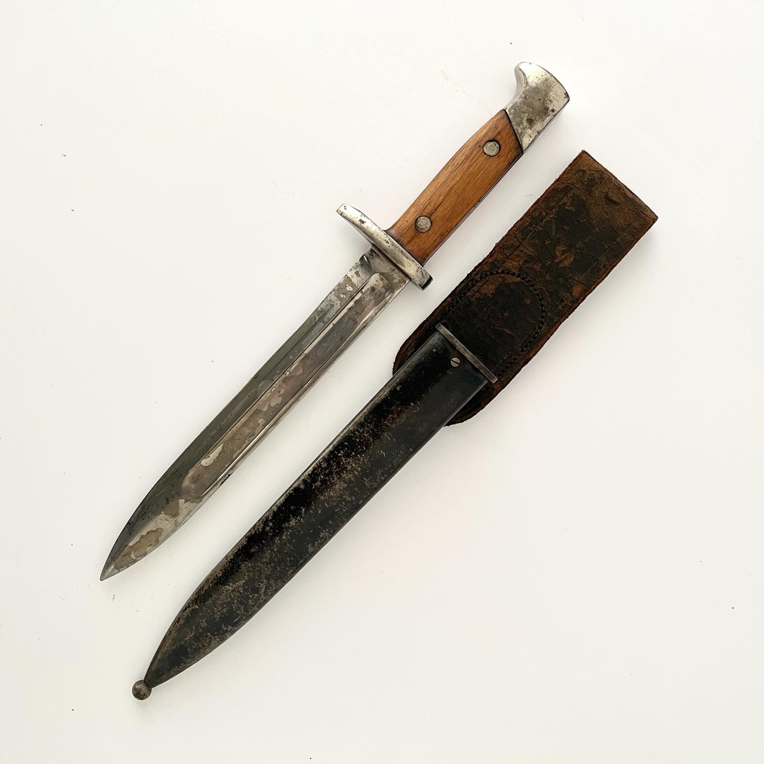 Bayoneta para fusil Remington modelo 1901 transformada a cuchillo por el Arsenal de Guerra del Uruguay. Con vaina original