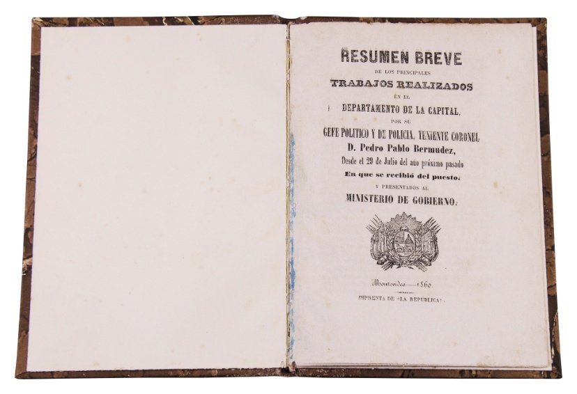 ![BERMÚDEZ, PEDRO PABLO. “Resumen breve de los principales trabajos realizados en el Departamento de la Capital, por su Gefe Político y de Policía, teniente coronel D. [...]”. Montevideo, 1860. - Imagen 2](https://zorrilla-website-uploads-us.s3.us-east-1.amazonaws.com/wp-content/uploads/2023/09/125_2-ARTEICONOS50.jpg)