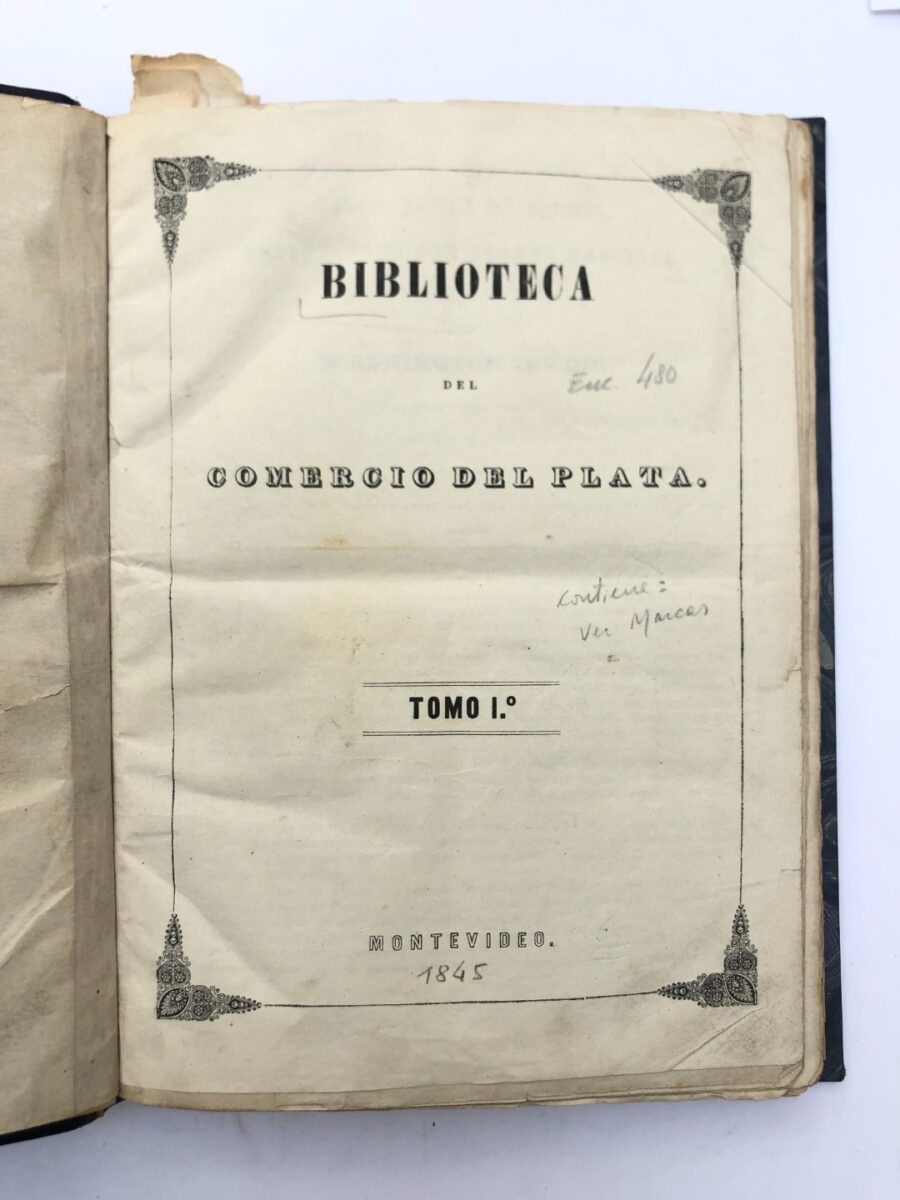 Biblioteca del Comercio del Plata. Tomo 1. Montevideo. 1845. Encuadernación con lomo de cuero.