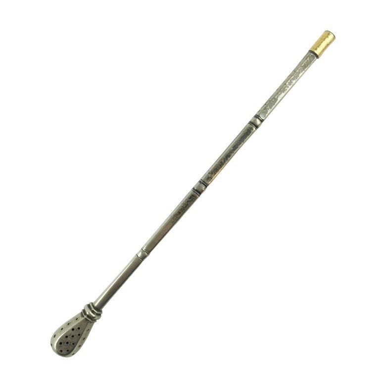 Bombilla cuadrada en plata lisa, con boquilla en oro. Alto 25 cm.