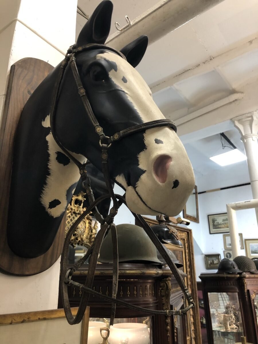 Bozal en cuero crudo con veintitrés pasadores chatos en plata y oro cincelados «flores» y argollas en metal blanco.