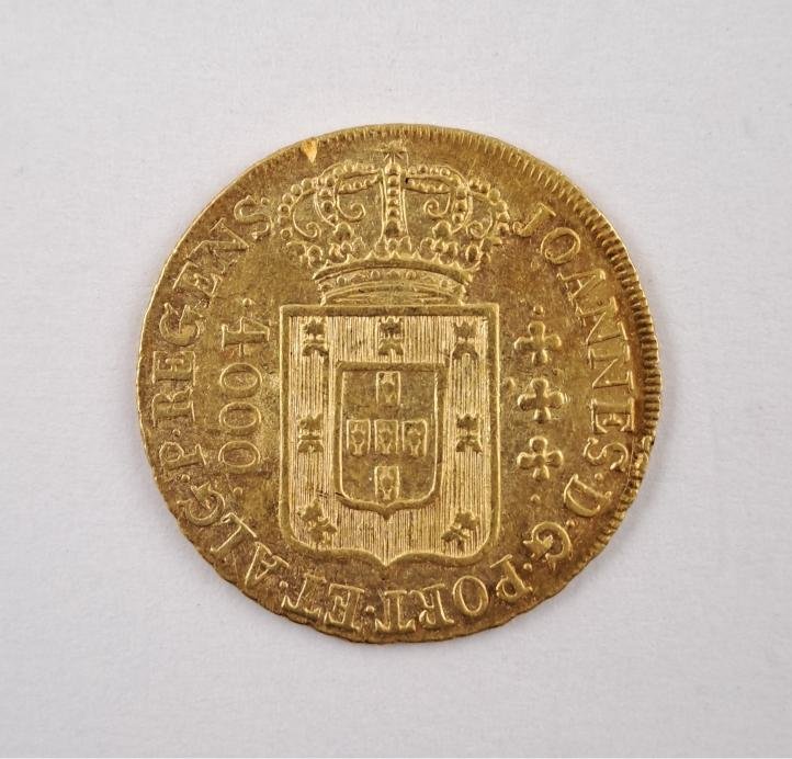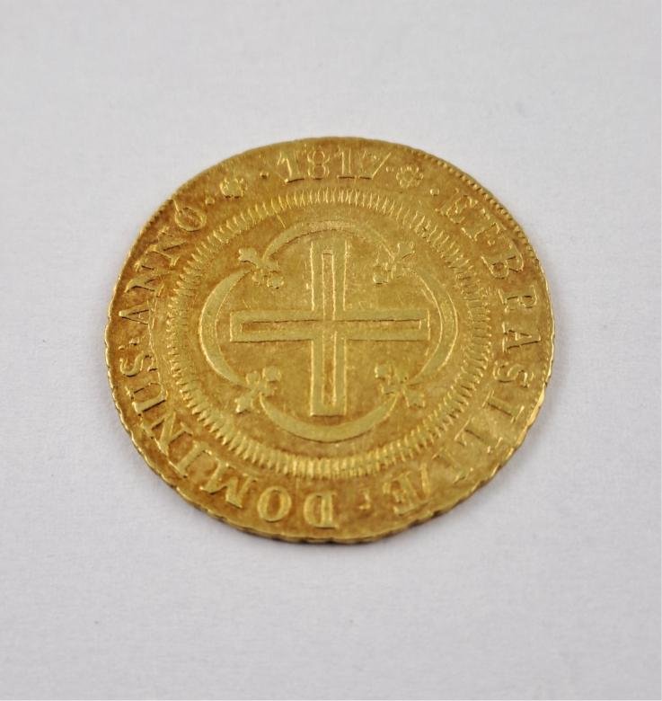 Moneda brasileña época colonial portuguesa en oro 917 denominación 4000 reis del año 1817. Peso 8 gr.