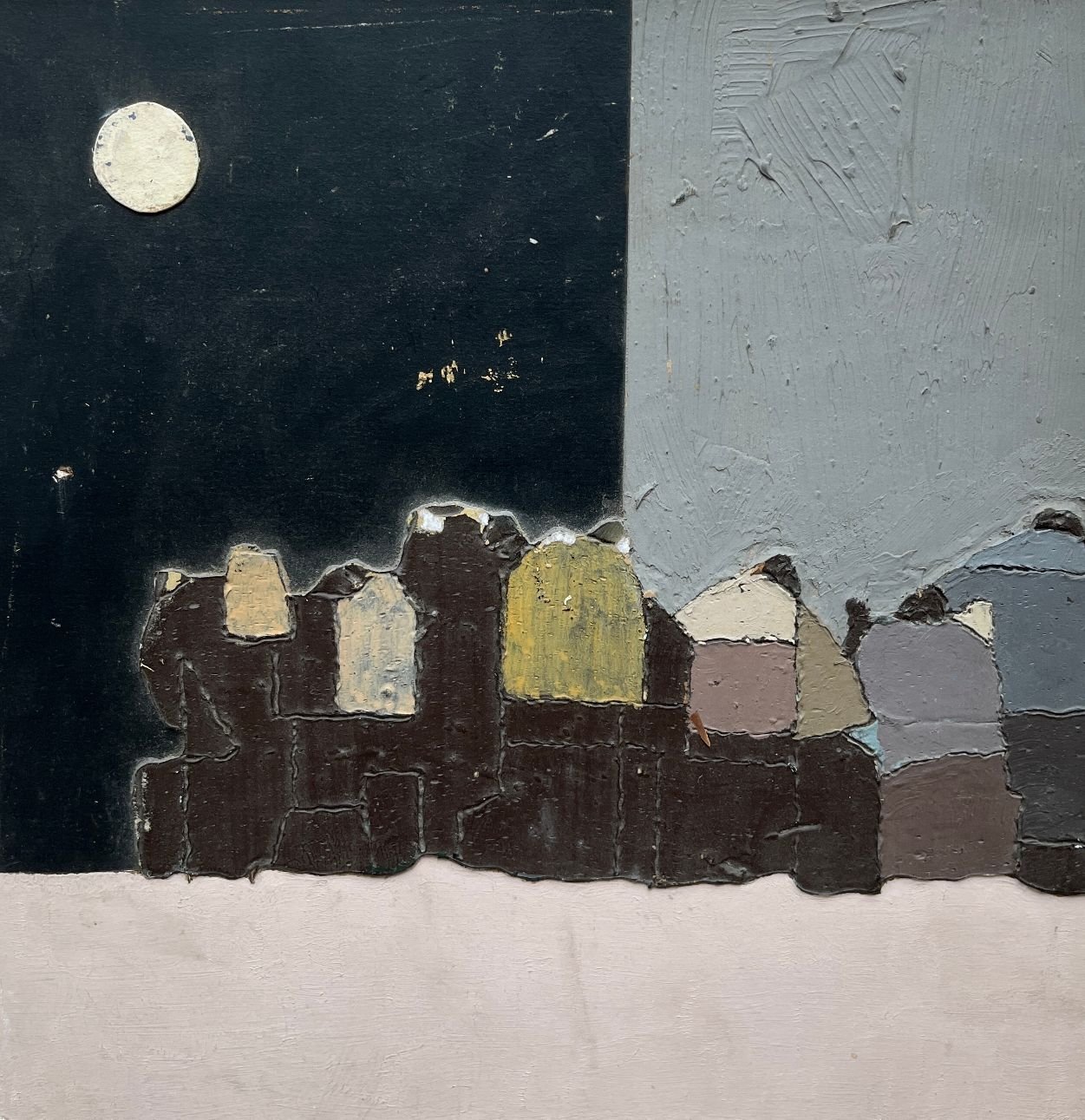 BRUNO WIDMANN (1930-1917) «Caserío con luna» Óleo sobre cartón Sin firmar 35 x 34.5 cm