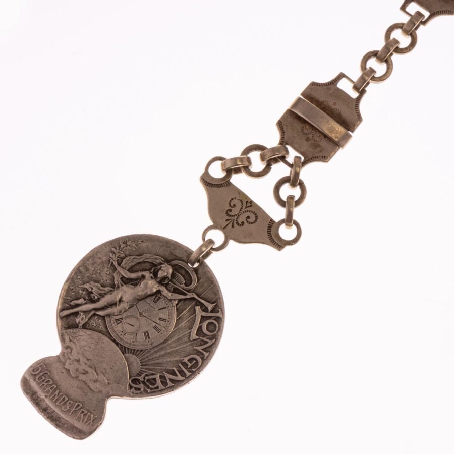 Cadena Longines para reloj de bolsillo en eslabones de metal, con medalla.