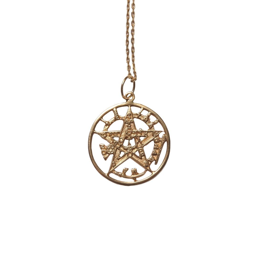 Cadena y colgante en oro 18 K amarillo. Colgante calado «Estrella de David». Largo cadena 46 cm. Peso total 7 gr.