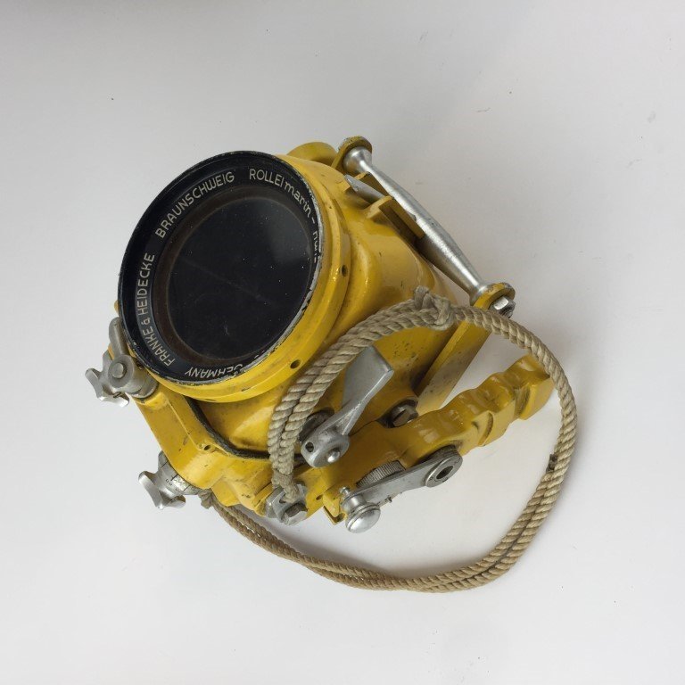 Caja estanca para cámara Rolley Marine, diseñada por Hans Hass y fabricada por Franke & Heidecke, Alemania.