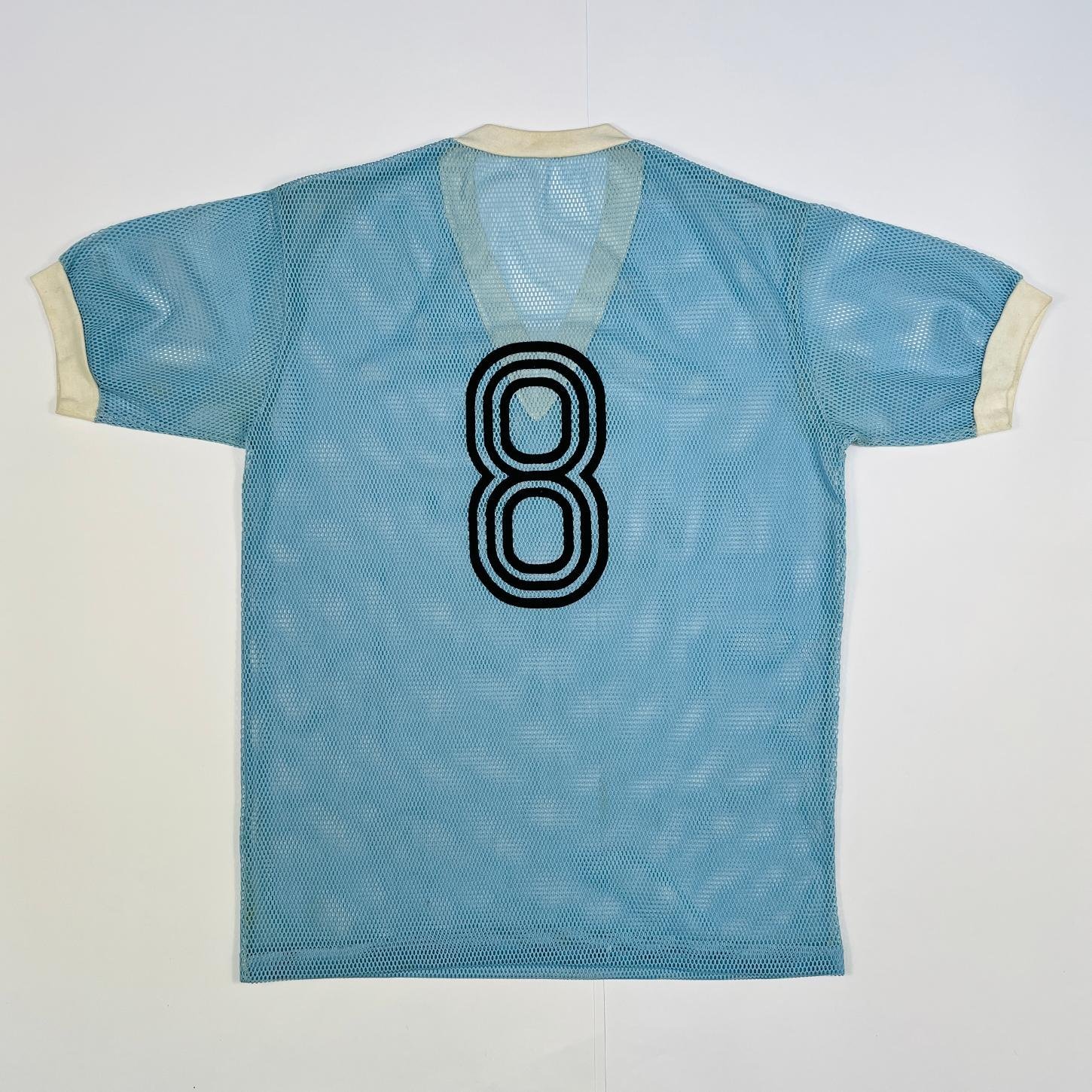Camiseta de la Selección Uruguaya de Fútbol perteneciente al jugador Jorge «Chifle» Barrios, número 8, año 1983, utilizada en la final de la Copa América Brasil 1983, torneo en que la Selección Uruguaya obtuvo el título de campeón. Prenda de fabricación brasileña, con número estampado posteriormente para ser utilizada en dicho partido.