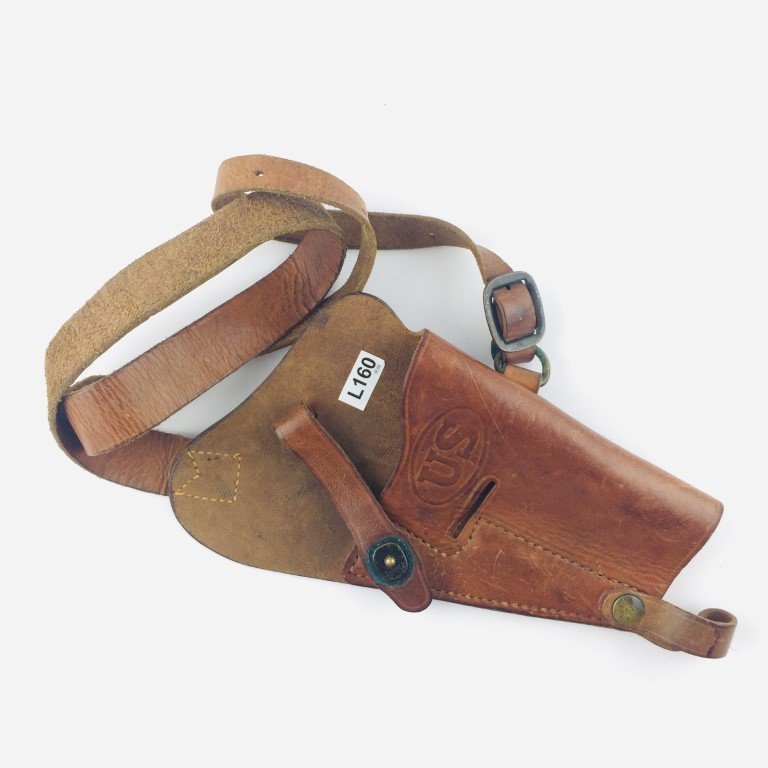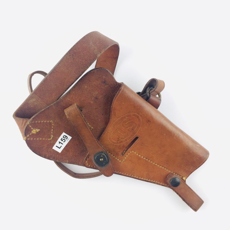 Canana estadounidense usada para la pistola Colt 1911, fabricada por Boyt, en suela con marca repujada «US».
