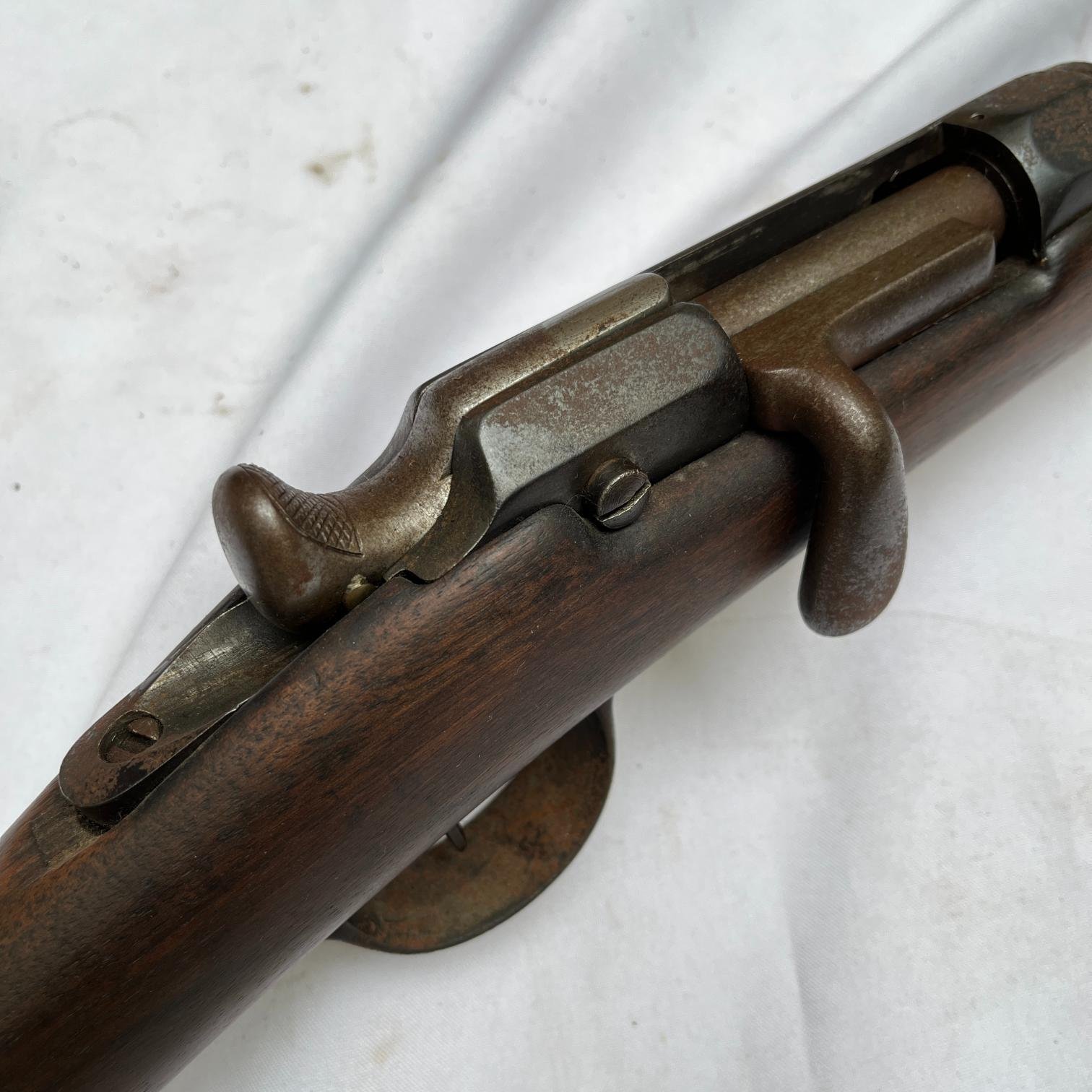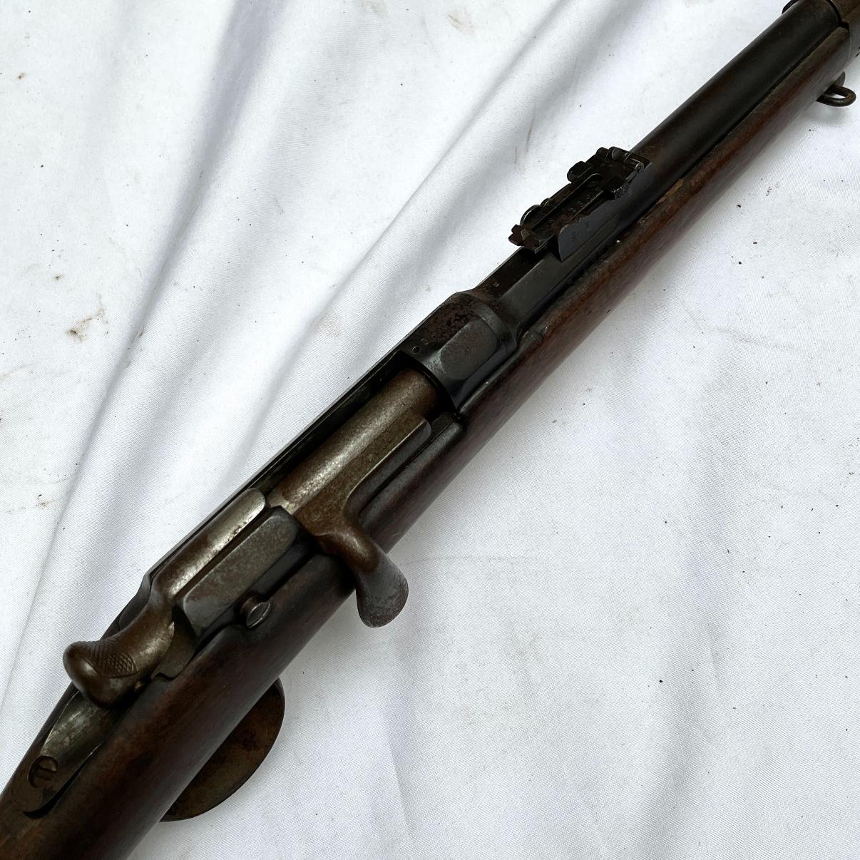 Carabina de cerrojo Aptierter Chassepot M1871, calibre 11 mm Mauser. Portabaqueta y mira no originales. Información ampliada en https://aammeu.wordpress.com/2021/02/02/aptierter-chassepot-karabiner-m1871/