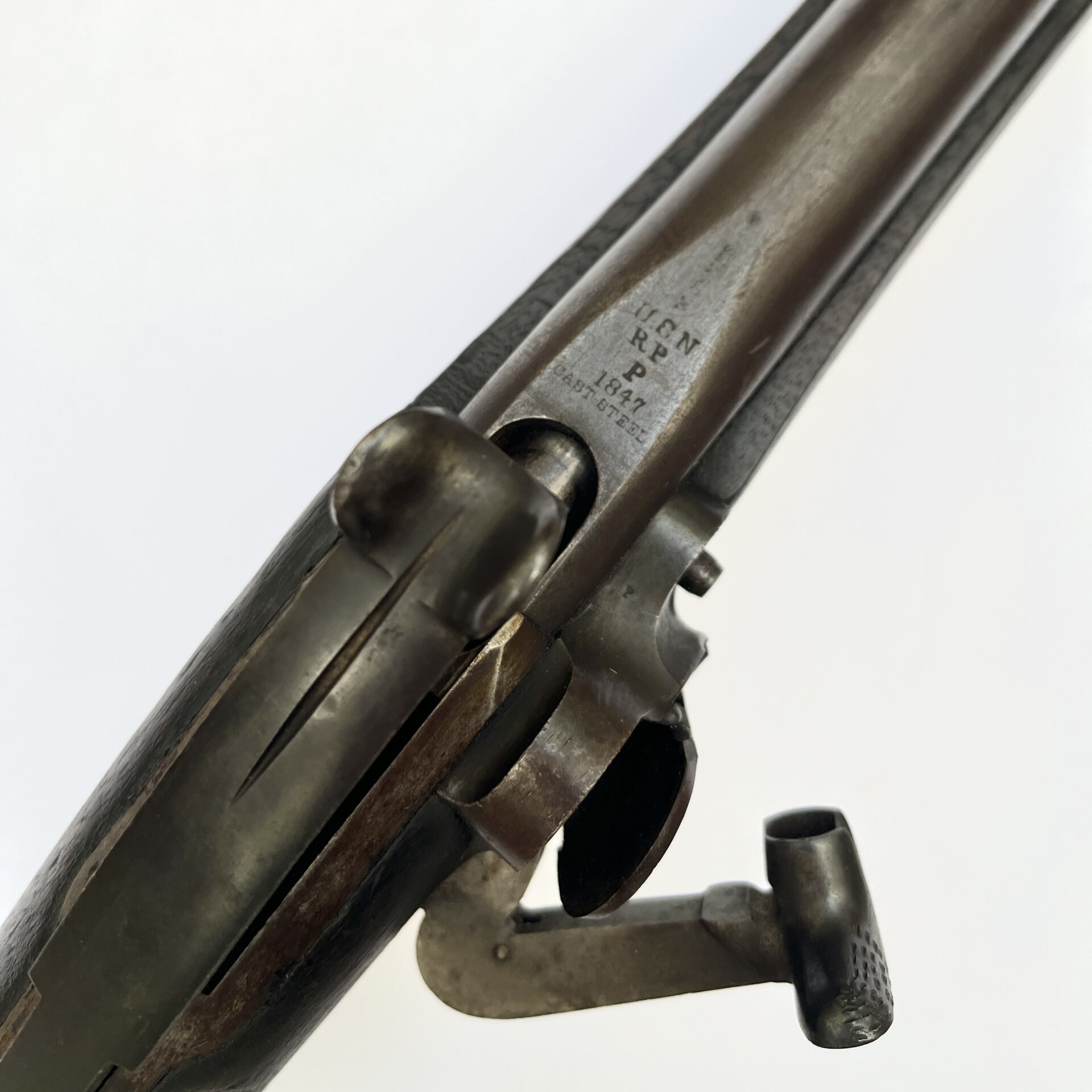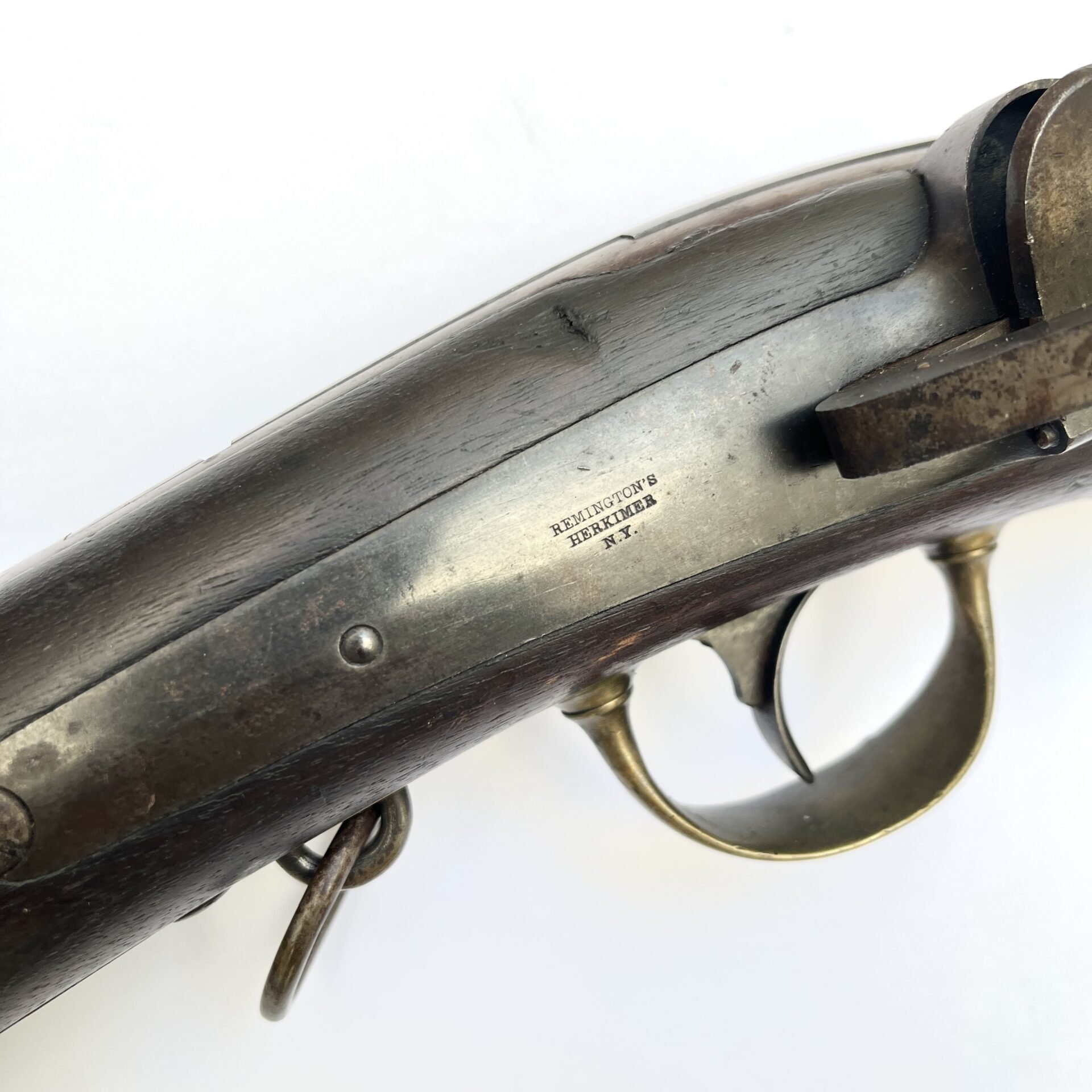 Carabina naval Jenks-Remington, breech loading, de percusión lateral y cebado con cinta sistema Maynard, modelo 1847. Cañón estriado de 24 pulgadas en calibre .54. Cajón de mecanismos marcado «REMINGTON’S, HERKIMER, NY. USN, RP, P, 1847, CAST STEEL». Culata en madera con guarniciones en bronce y anilla portacorrea. Fue arma de dotación de la flota de fragatas de la Armada estadounidense durante la Guerra de Secesión (1861-1865).