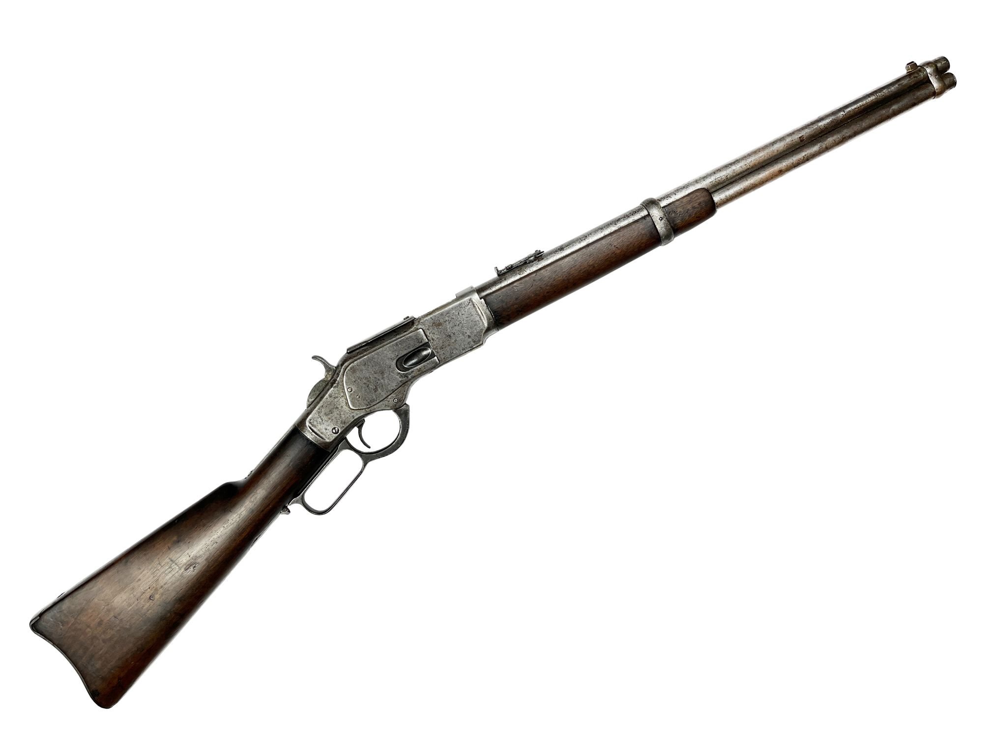 Rifle Winchester modelo 1873 calibre 44. No. de serie 180137. Baqueta en tramos, original. Funcionando.