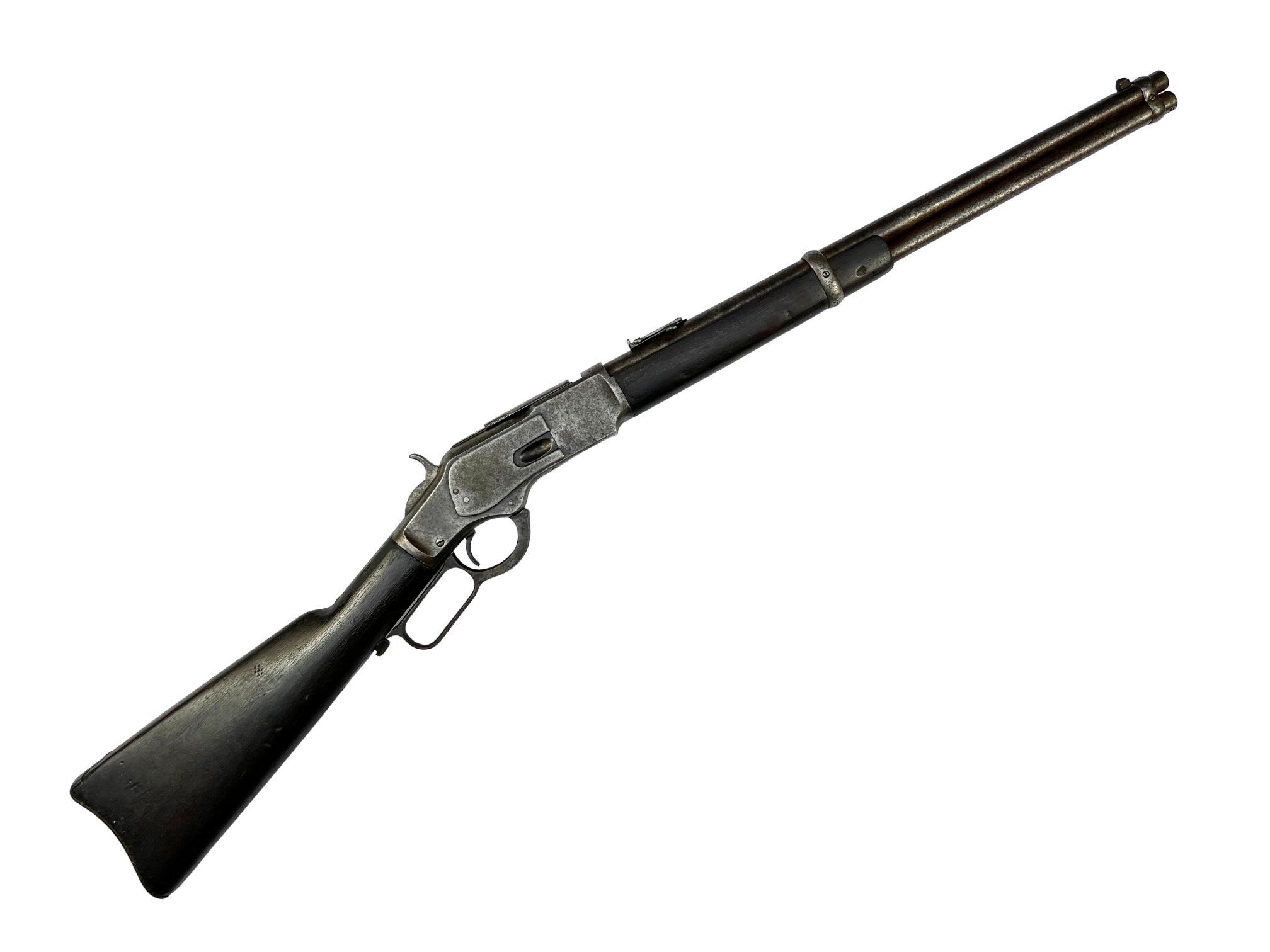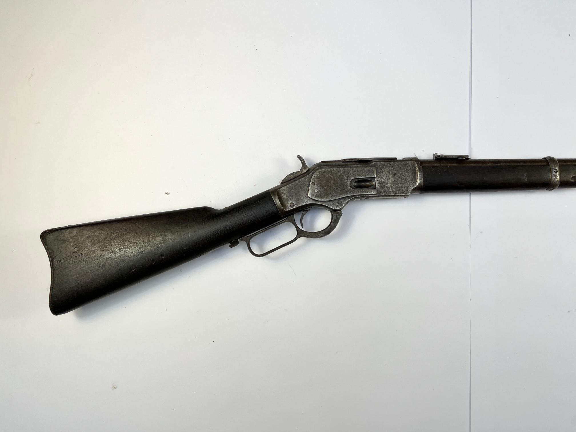 Carabina Winchester 1873, tercer modelo, calibre .44 WCF. Nº de serie 32293B. Completa, funcionando. Fabricada en 1878. Caño de 20 pulgadas. Falta baqueta.