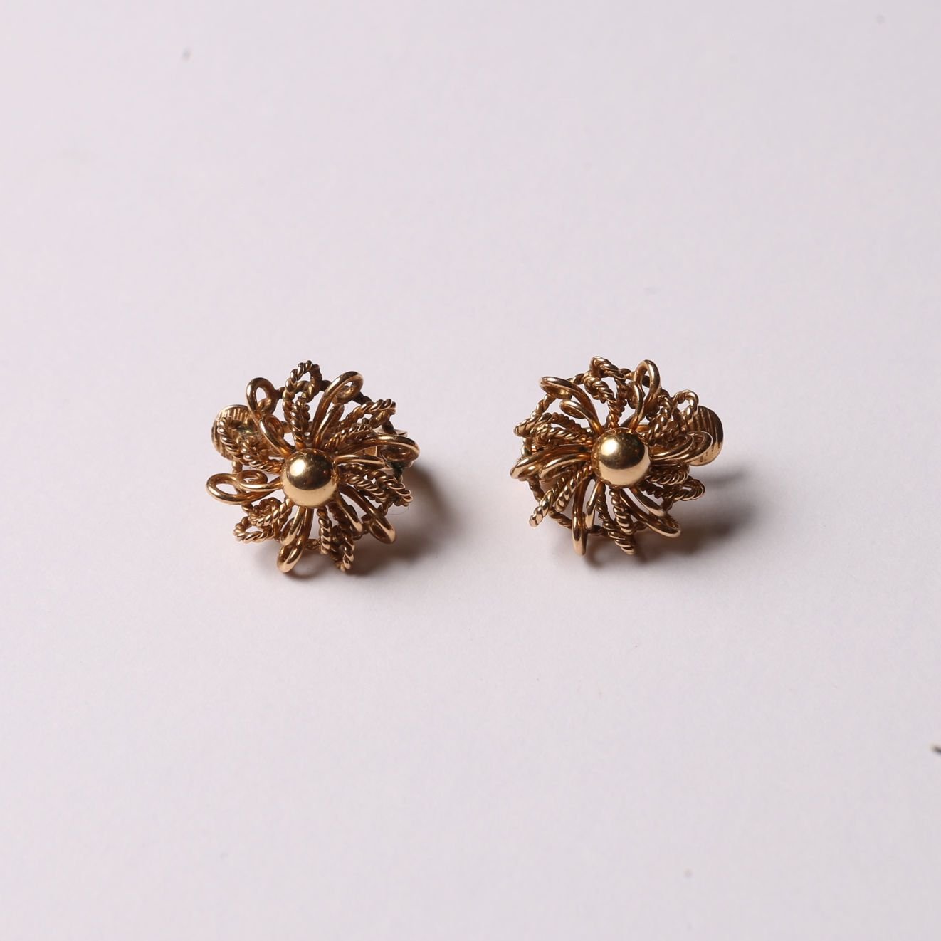 Par de caravanas en oro 18 K amarillo esculturadas en forma de flor. Diámetro 17 mm. Peso total 10 gr.