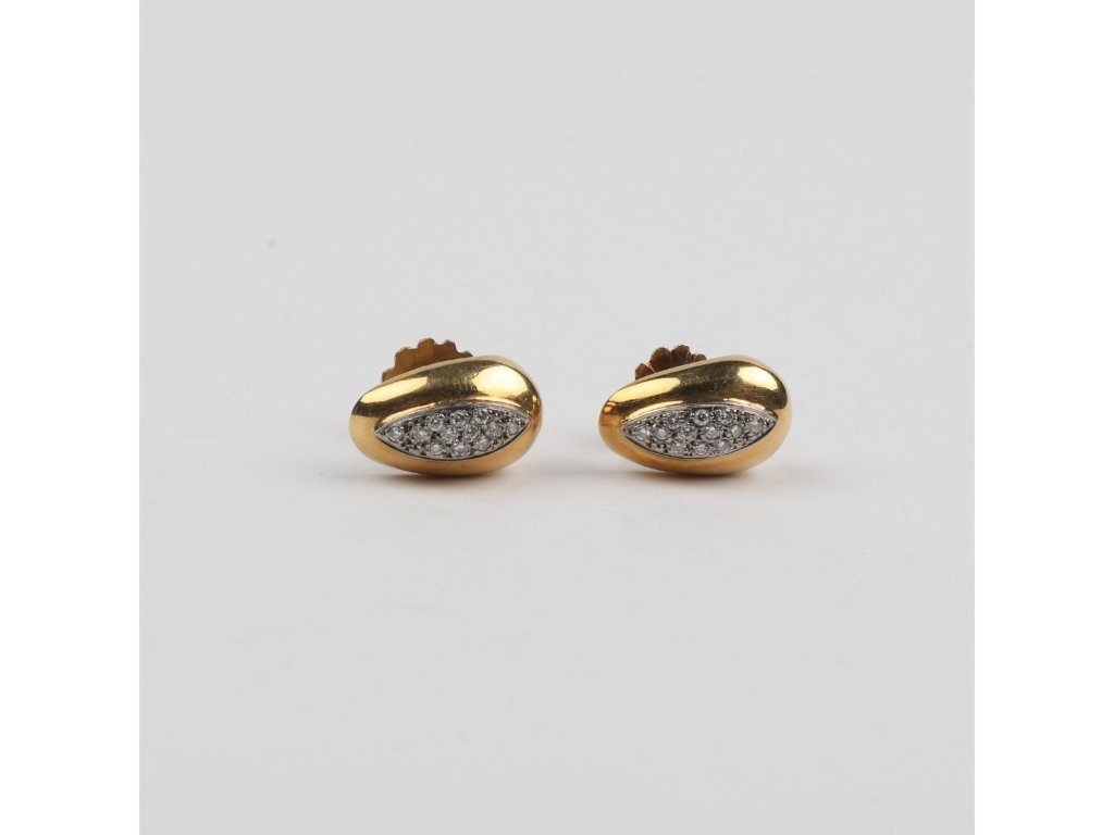 Par de caravanas tipo tornillo en oro 18 K amarillo con doce pequeños brillantes cada una. Peso bruto 6 gr.