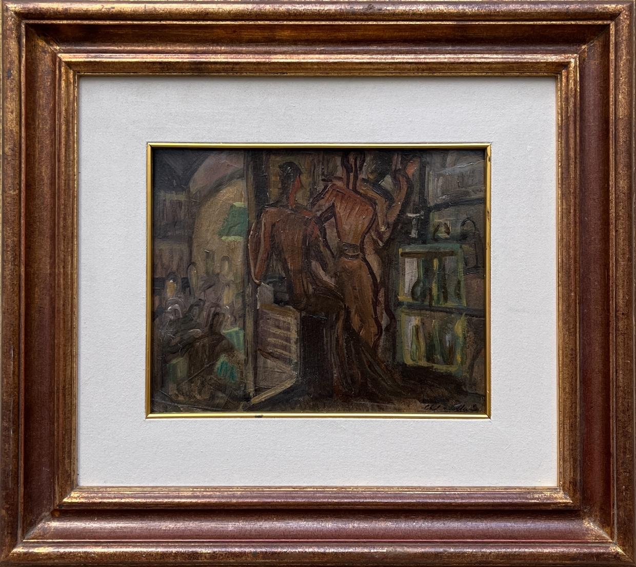 CARLOS ALBERTO CASTELLANOS (Escuela uruguaya, 1881-1945) Óleo sobre cartón «Café» Firmado abajo a la derecha 22,5 x 28,5 cm