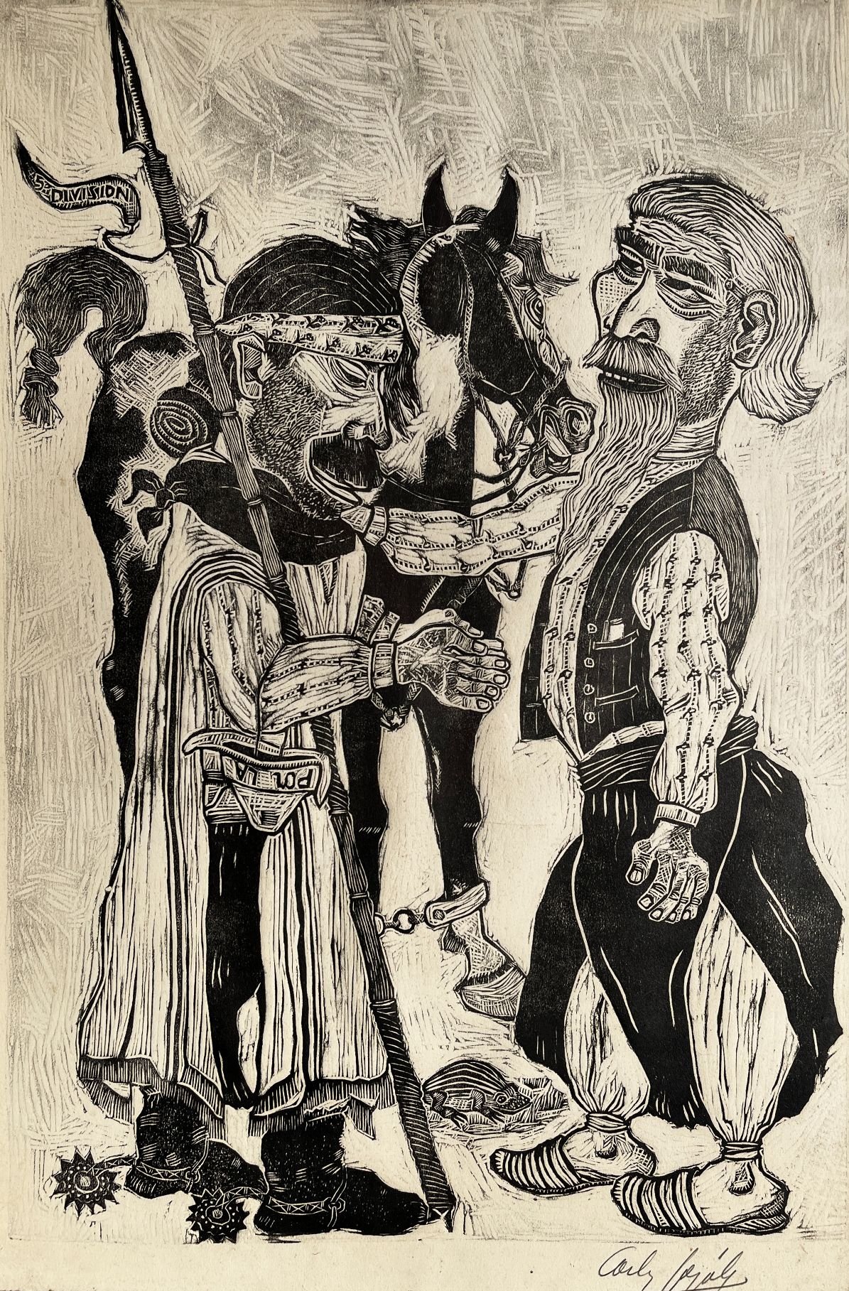 CARLOS GONZÁLEZ (Uruguay, 1905-1933). Grabado. «Bendición, Tata.» Firmado abajo a la derecha. 49 x 33 cm.